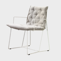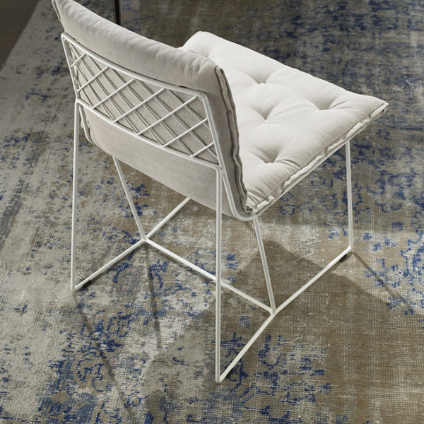 The Syrma collection is conceived as a visually light product, combining many intertwined wires. This appearance of lightness is achieved by a metal mesh and a perimeter of rod. In order to obtain a comfortable seat it comes with a capitoné pad fixed to the mesh. It is available in three colours (copper, white or dark grey), the capitoné and the side zipper combine with the colour of the structure. The collection includes chair, armchair, high-backed armchair and footstool.