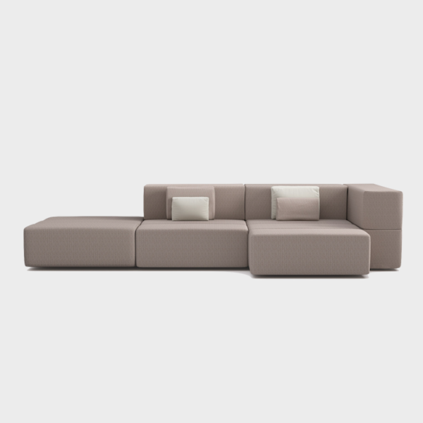 Dim: 3470w x 1370d x 726h mm. Price per composition in the first picture. Includes one armless module, a chaiselongue module, a left arm module, a large ottoman, 2 little pillows and 2 big pillows. Please specify upholstery fabric, available in the spec sheet. More configurations available upon request.