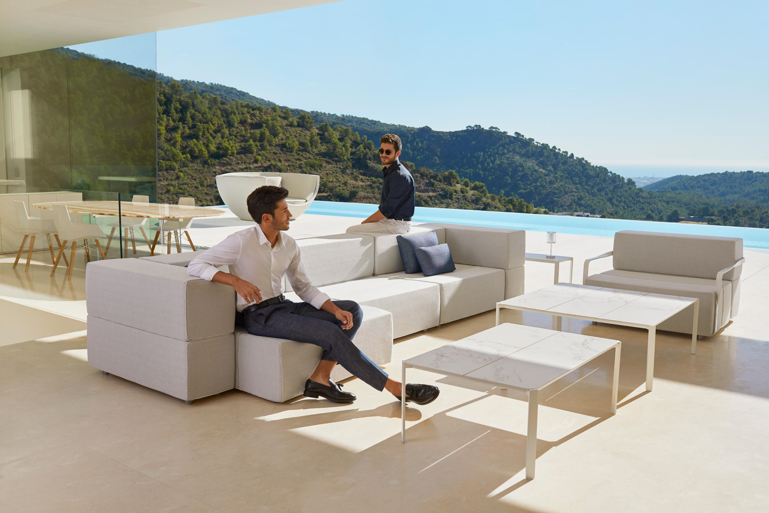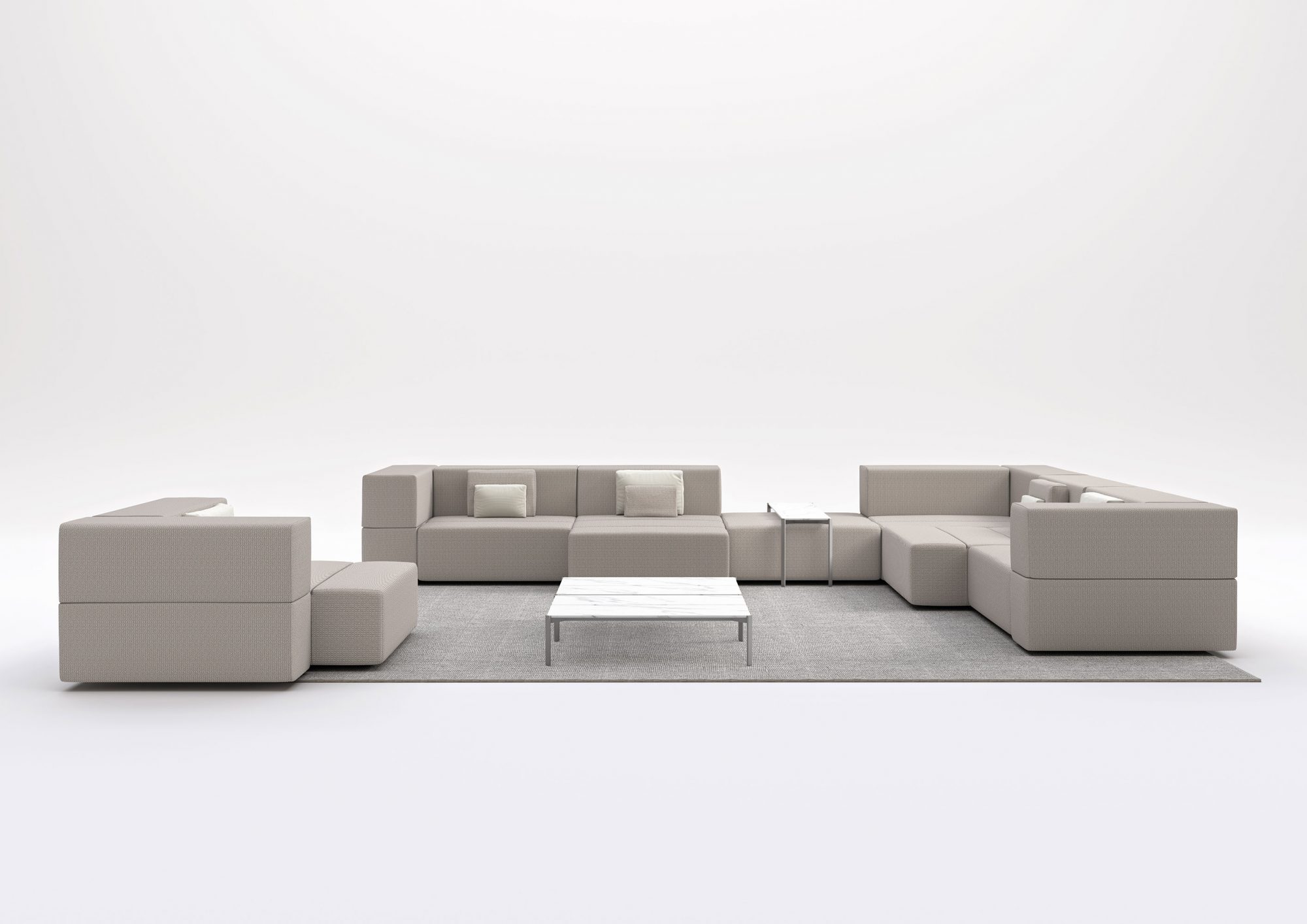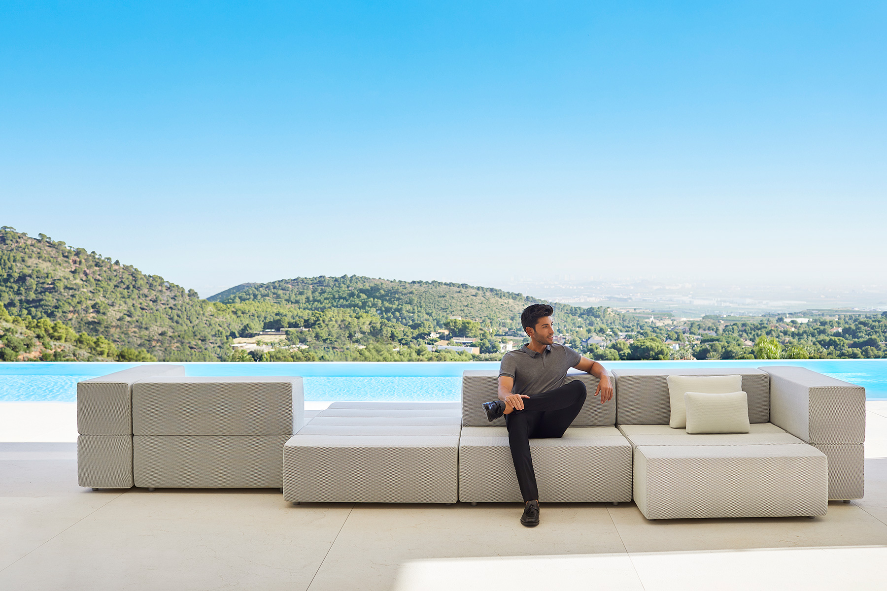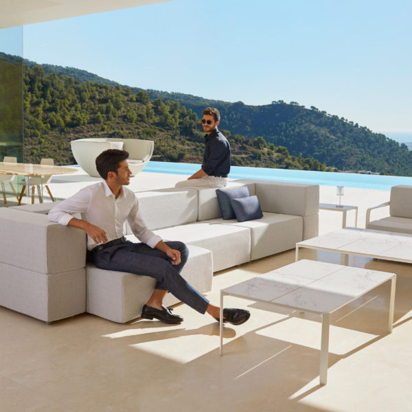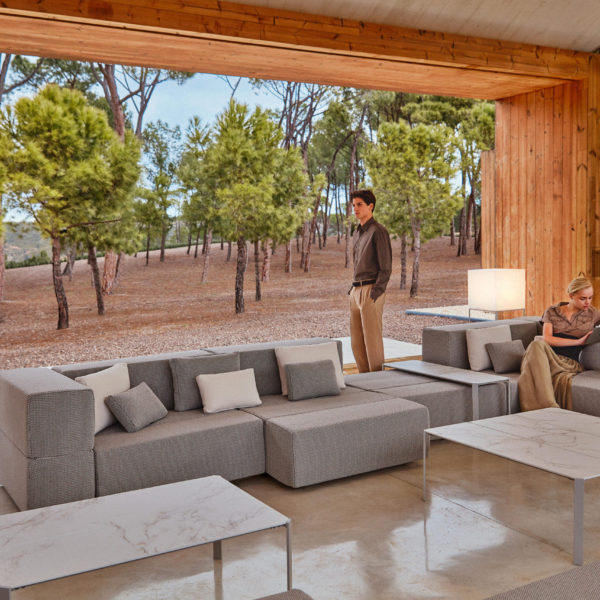 The TABLET collection, designed by Ramon Esteve links new technologies and flexibility to the versatility of a sectional composition, creating a program based on duality, identity and integration. Its character blends with the space and adapts itself to it. This versatility can be seen due to the collection’s capacity to adapt to different surroundings, creating a reticular composition derived from the sectional’s juxtaposition where the compositing freedom is the main goal. The upholstery, made of independent sections, allows you to create different shapes, which always keep visual consistency.The collection’s construction, based on polyurethane foam with a metallic structure upholstered with polypropylene fabric, makes TABLET a perfect collection both for indoor and outdoor spaces, thanks to its sophisticated aesthetic and finishing.