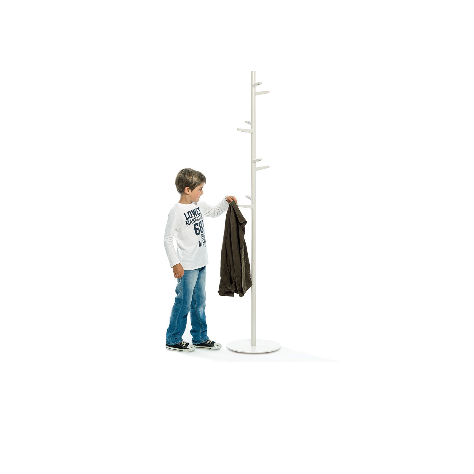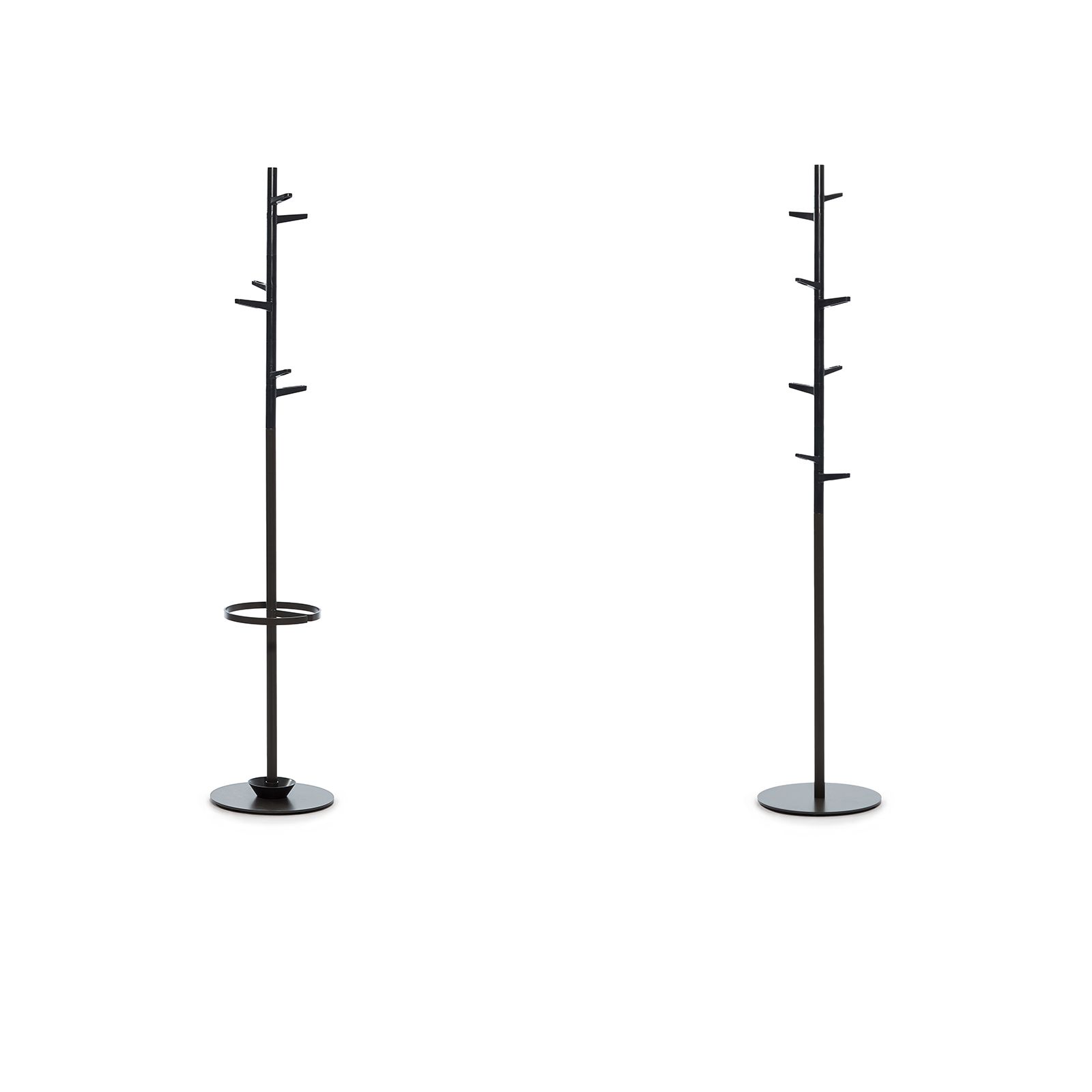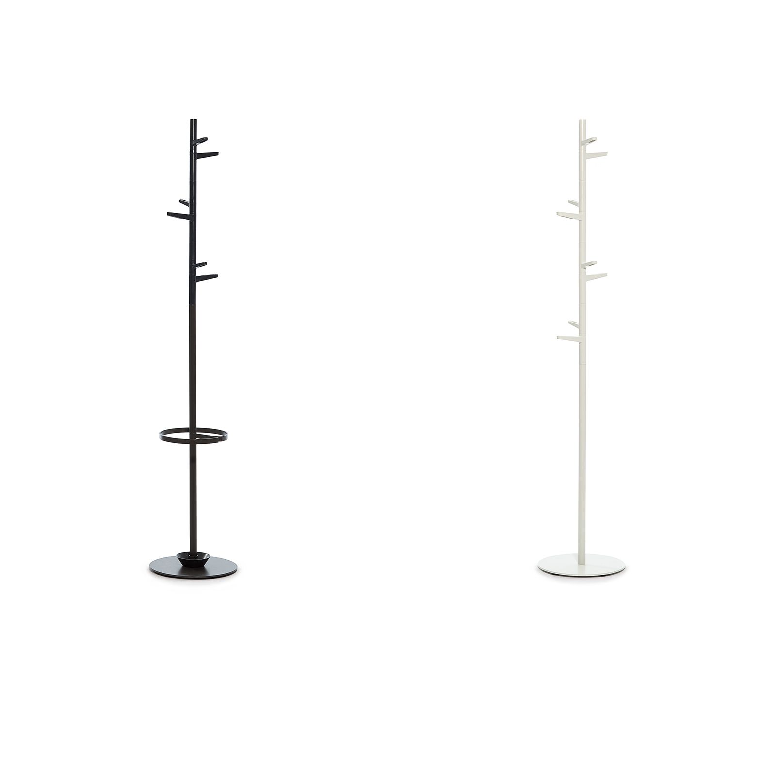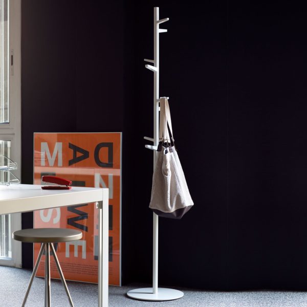 This coat stand has been designed by Antoni Arola, an internationally renowned designer. The ideal accessory for receptions and offices but also for the home, its structure has eight pegs at differing heights to make it easy to hang garments, bags, etc. The collection also includes a version with an incorporated umbrella stand and separate umbrella stand. It has a steel base, aluminium tube and rounded plastic pegs for individual items.