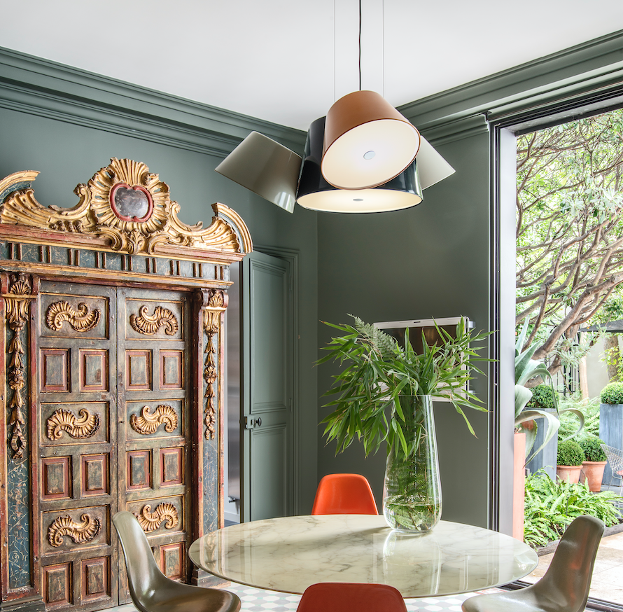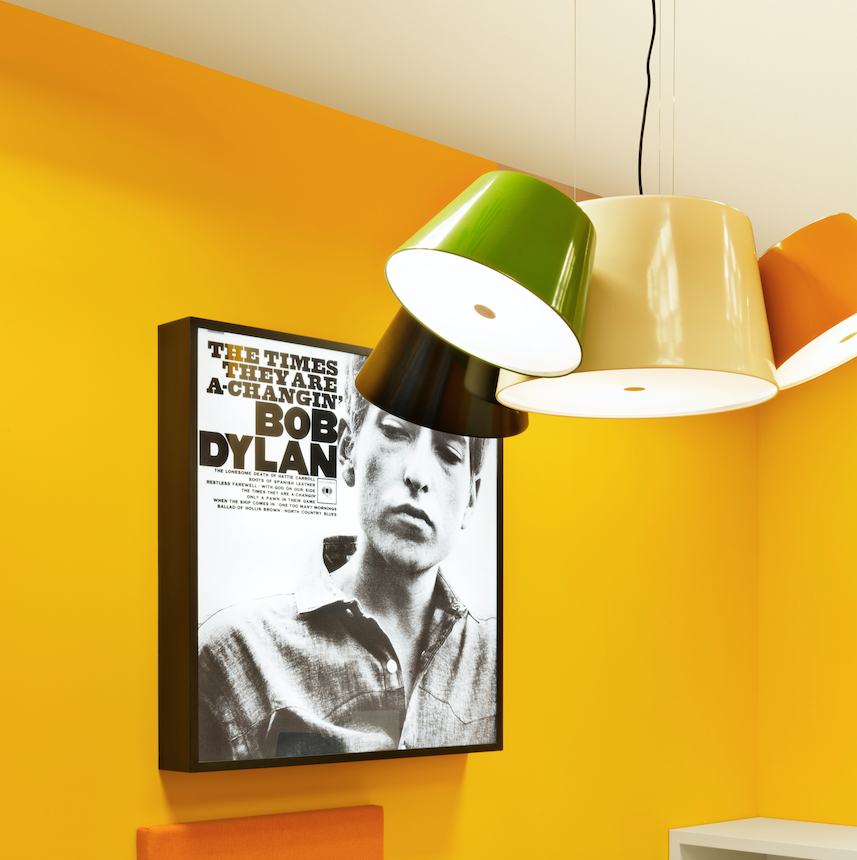 Tam Tam is available as a suspension lamp in two sizes: a regular size with either 3 or 5 satellite shades and a mini size with 3 satellite shades. In all of them, the central shade is available in black or off-white, and the satellite shades can be combined in black, off-white, orange, green, brown, sand and blue. Please specify the colour finishes the shades.