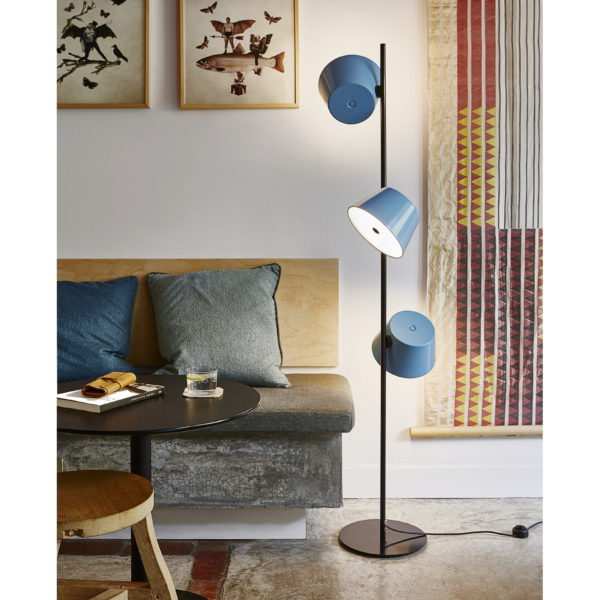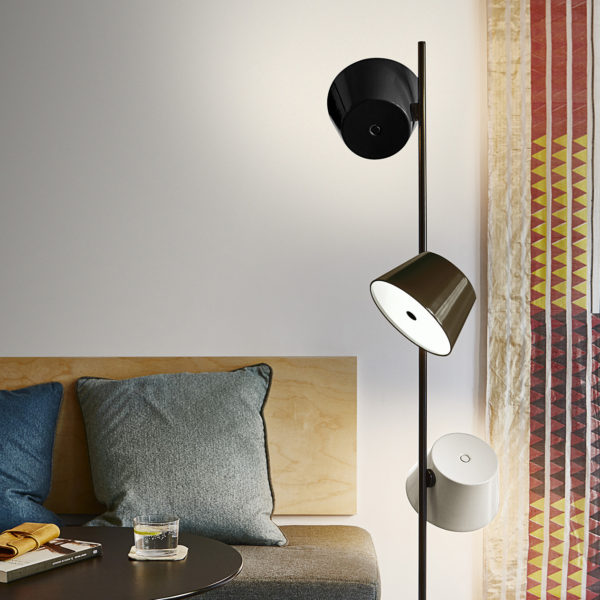 This year, the colorful, sonorous Tam Tam, already so multifunctional, now comes in a new linear version that retains its fun, dynamic roots. The new standing models have been simplified with the addition of a hanging pole to which colored lampshades are attached that can be oriented in any direction and come in a variety of colours. These new members of the Tam Tam family fit more multipurpose spaces, either long or narrow, lighting bars, a reading corner or an area of transit. Consumers can mix and match the color and number of lampshades to suit the aesthetic of each atmosphere, each interior and every need. Three shades version.