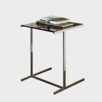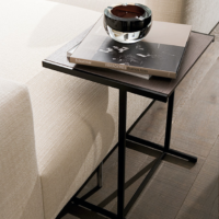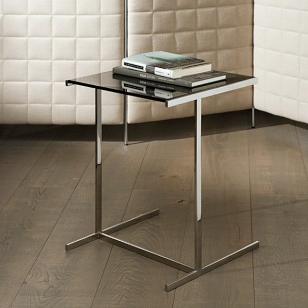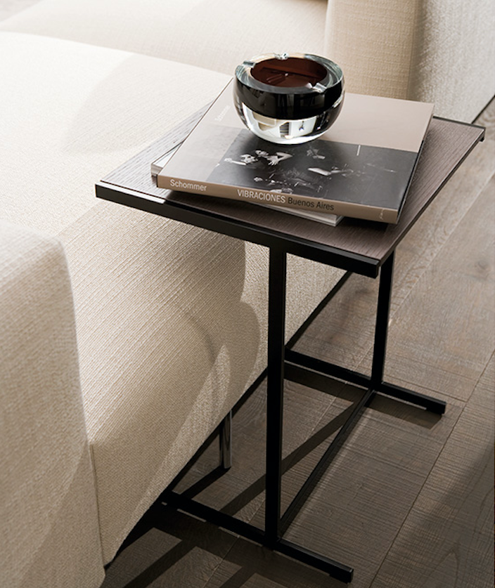The strength of the table Tes lies in its lightweight metal frame, which in turn gives it great resistances and stability. Tes is conceived as a product intended to be placed beside or in front of sofas; its function is purely auxiliary. The metal parts are painted black iron or stainless steel (satin or gloss), the top cover can be wood or glass.