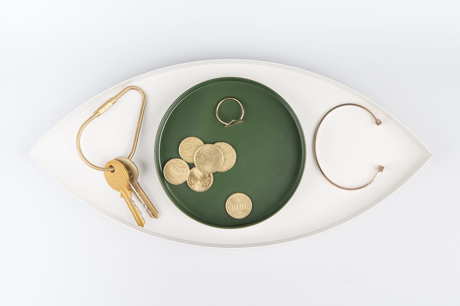 Keep an eye on your valuables with this two piece metal Eye shaped tray from DOIY. The two independent compartments can be displayed together or apart. Perfect for jewellery, spare change and keys.