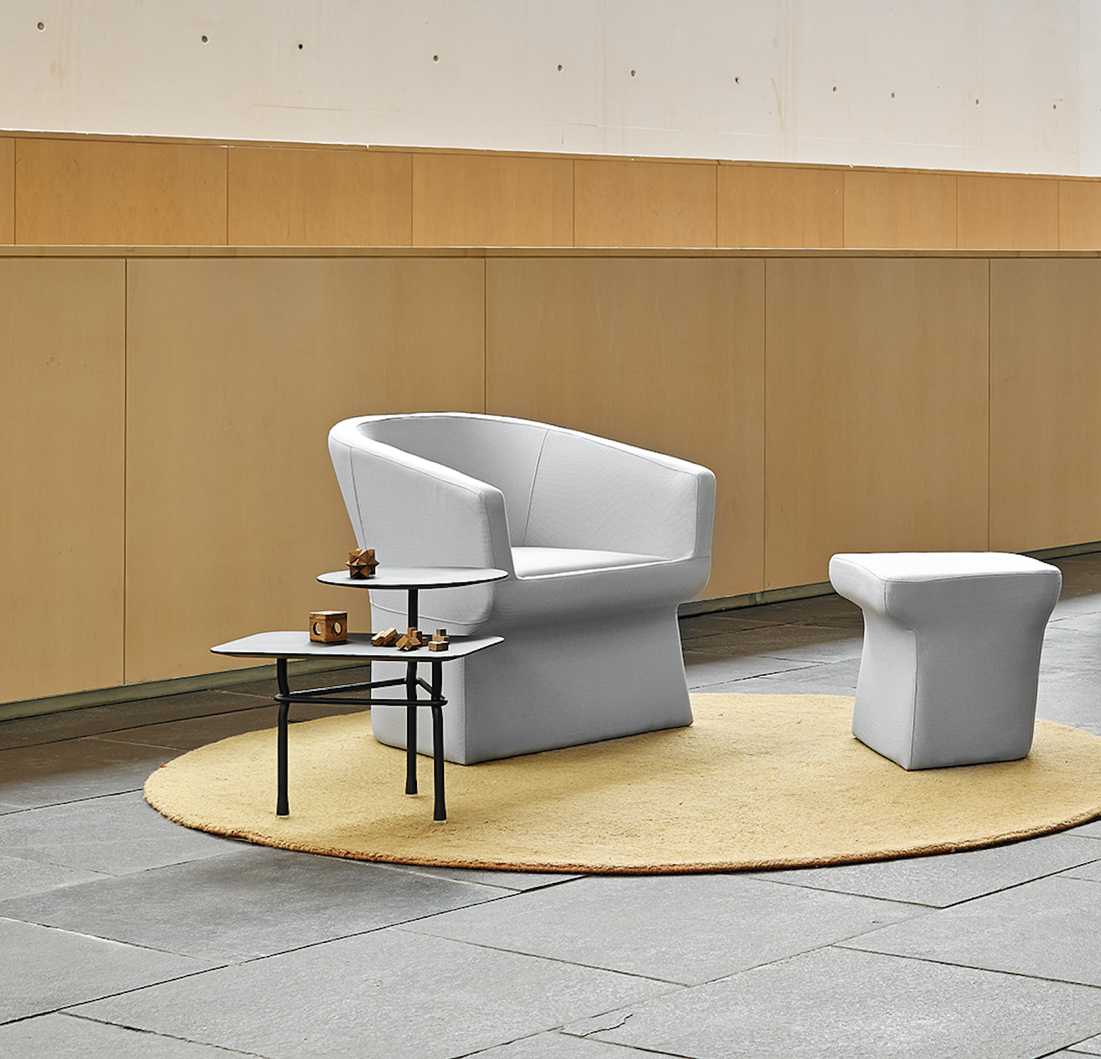 Unique side table for relaxed areas with a twist of modernity.