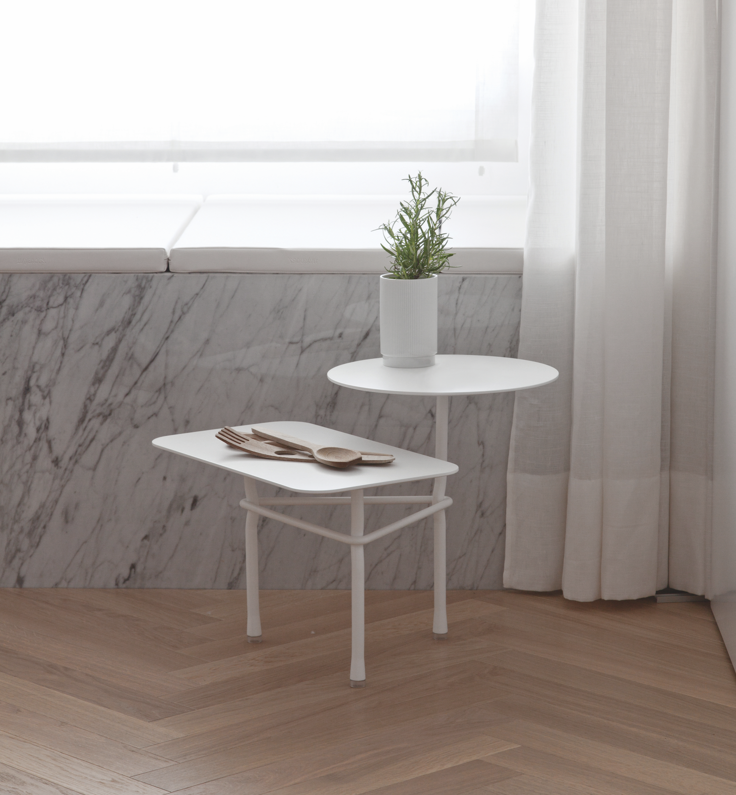 The designs and careful detailing of both models can be combined to create interesting landscapes, making this table extremely flexible for residential use or contract projects.