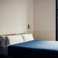 The TMM collection of short and long wall lamps comprises a simple beech channel into which the white or beige parchment shade is partially inserted. The short wall lamp can also come with the exterior cable, which doubles up as the light switch, or have a direct connection to the wall. The white version with direct wall connection comes with upper diffuser in white translucent methacrylate. In the plug connection the light is switched on/off by pulling lightly on the cable.