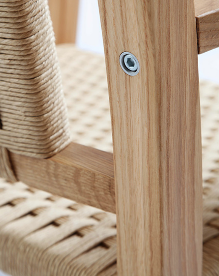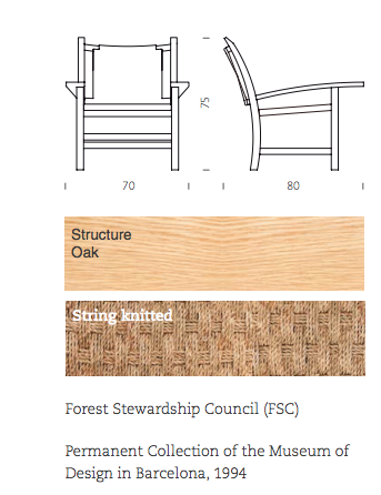 The architect Josep Torres Clavé designed this armchair in 1934 to furnish the Pavilion of the Spanish Republic at the 1937 International Exhibition in Paris, next to works such as Guernica by Pablo Picasso and others by Alexander Calder and Joan Miró. With an oak frame and its seat and back upholstered in string, its traditional appearance adds a touch of elegance to spaces in hotels, receptions, and waiting rooms, as well as reading areas in libraries and other special areas.