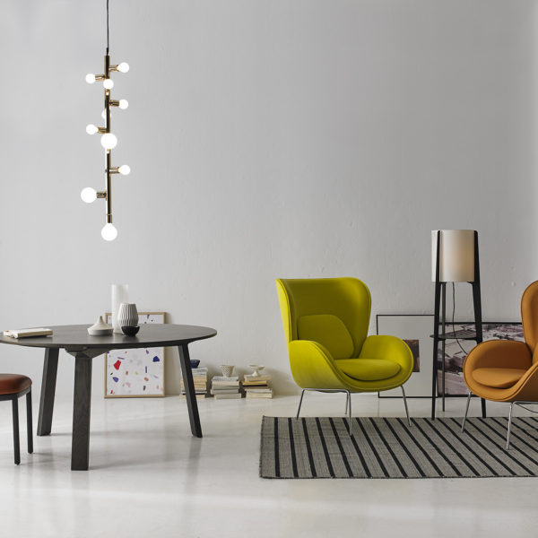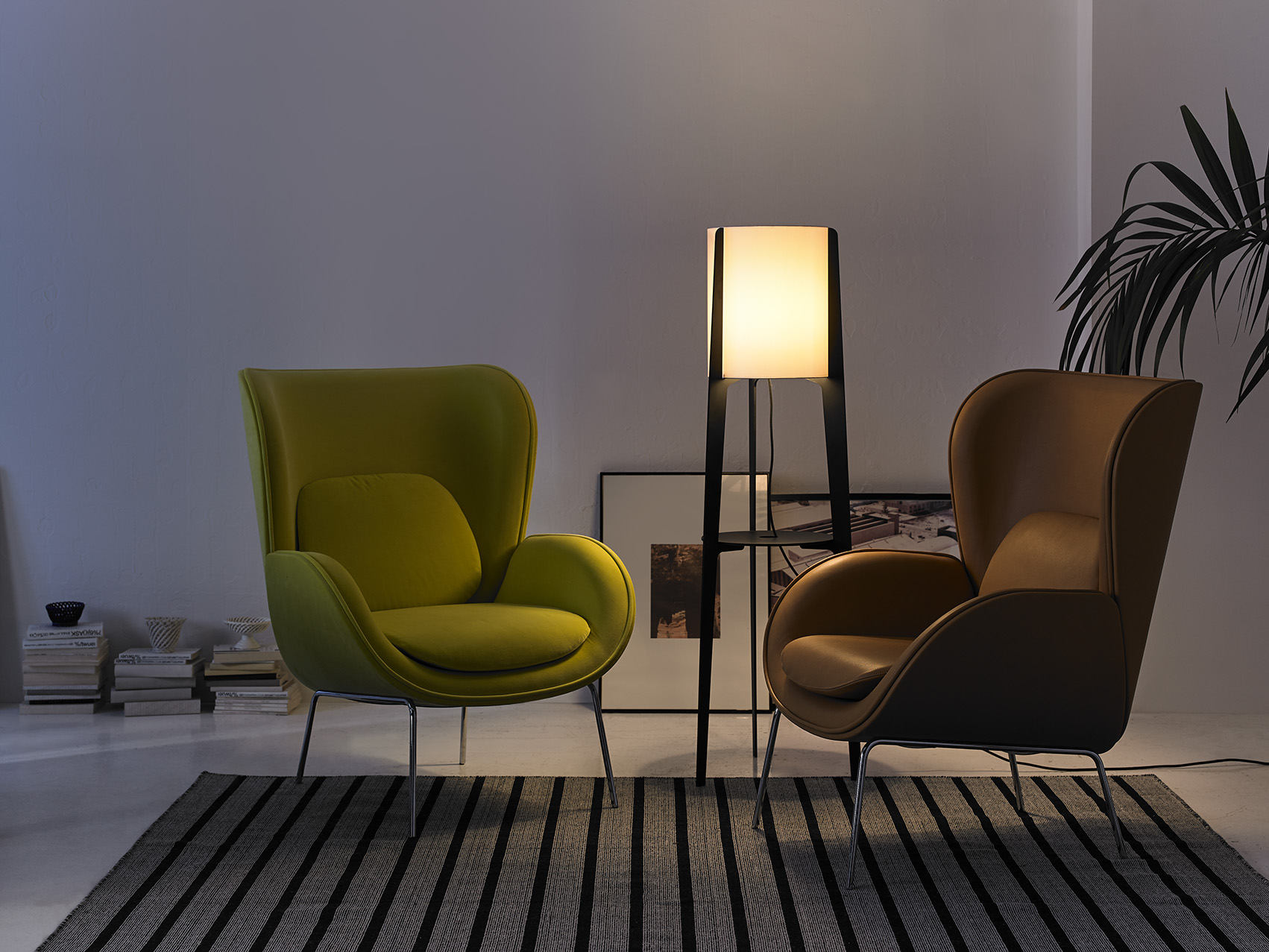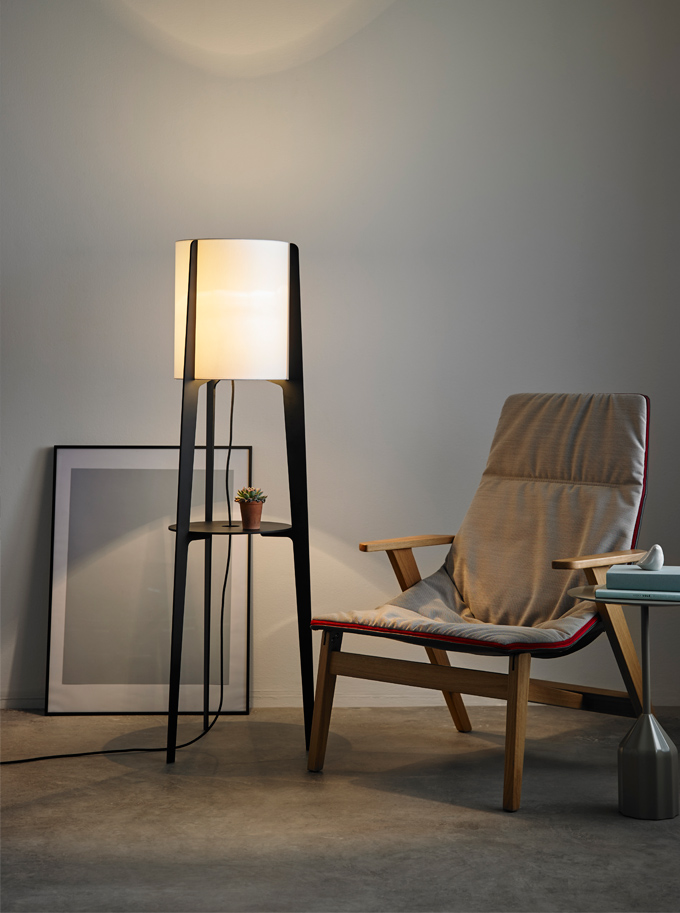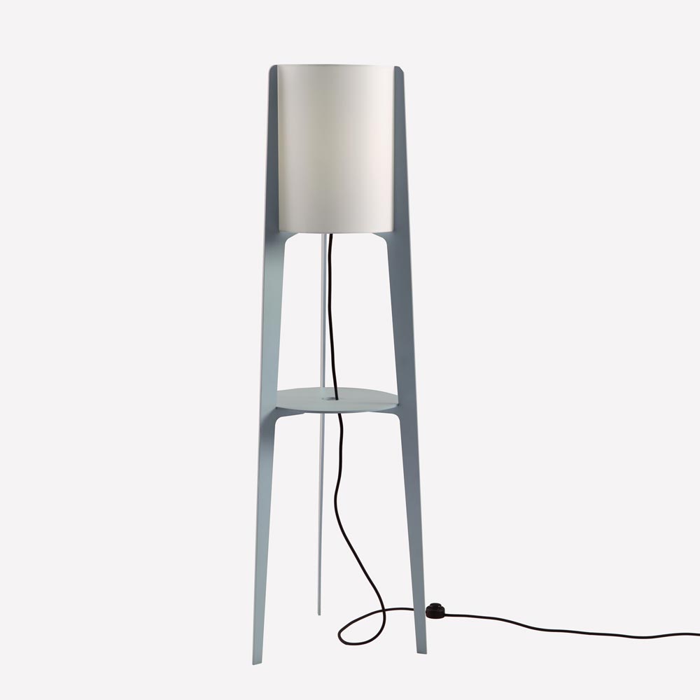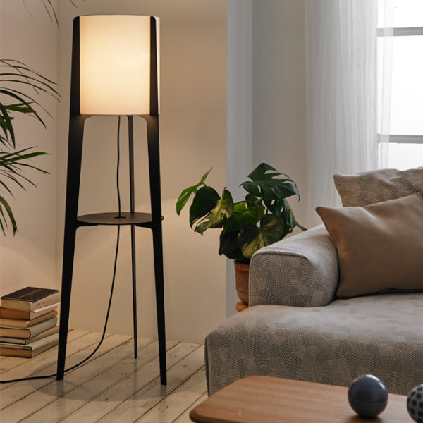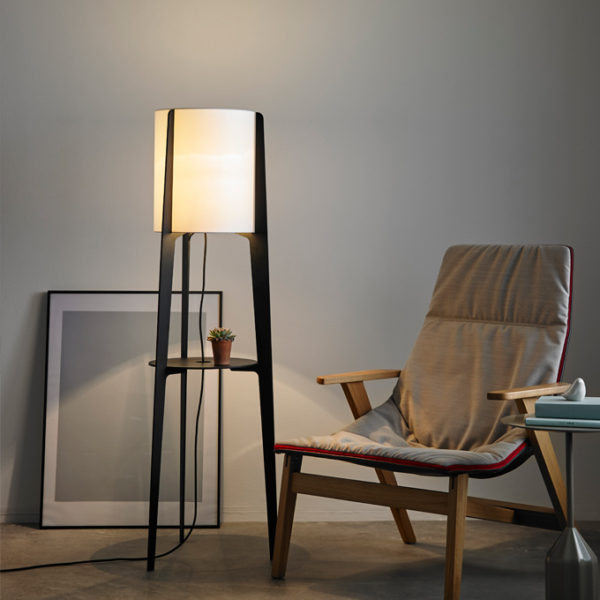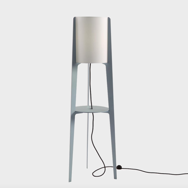 Tower is a Reading floor lamp which design is inspired in the old deposits of water that were used in big cities to supply potable water. Its tripod structure is made of metal as contrast to the warm cotton shade. It has a sculptural character on top of its functionality, thanks to a tray placed in the middle which can be used as support table.