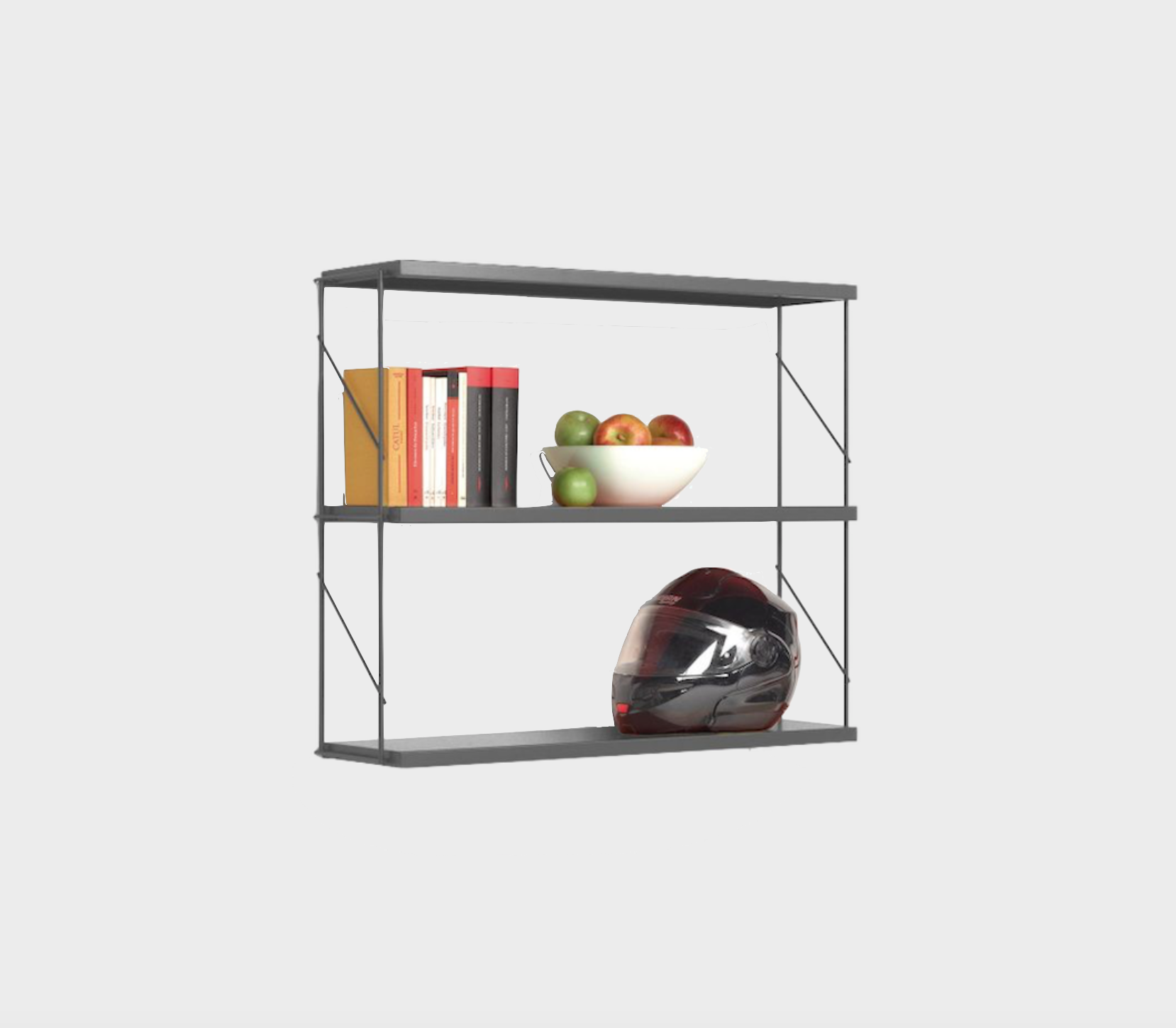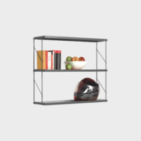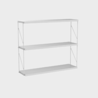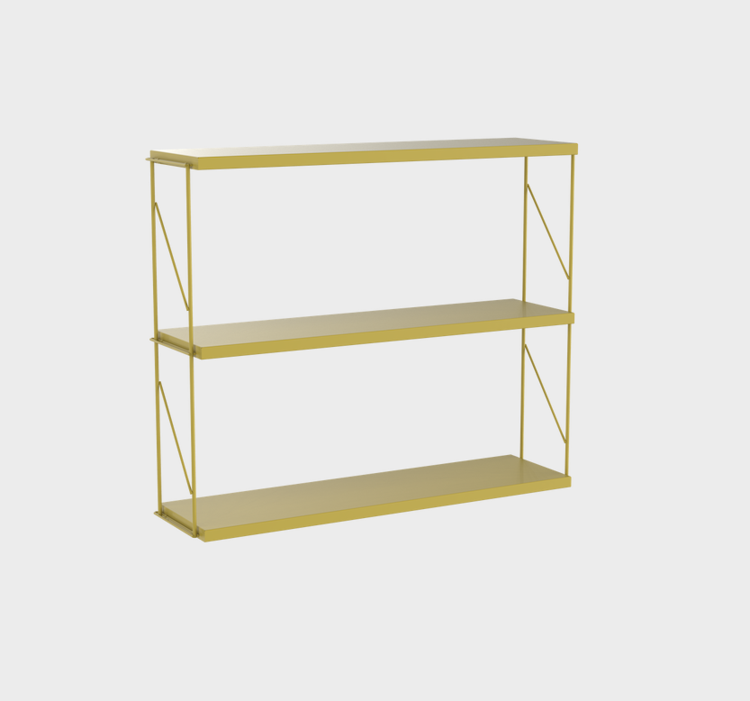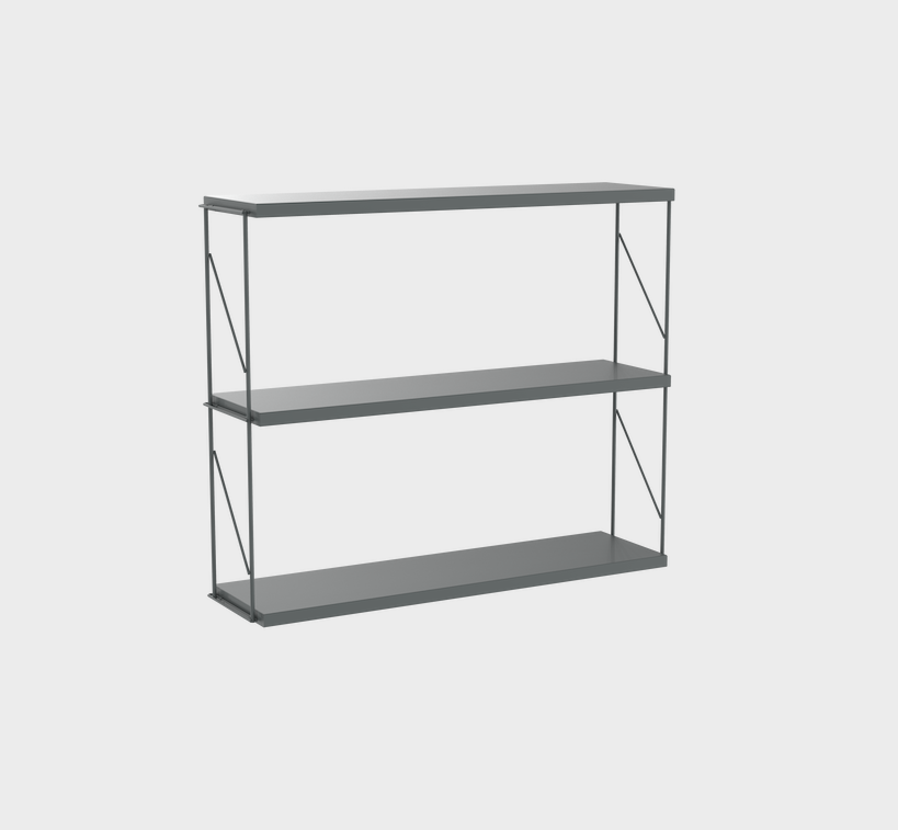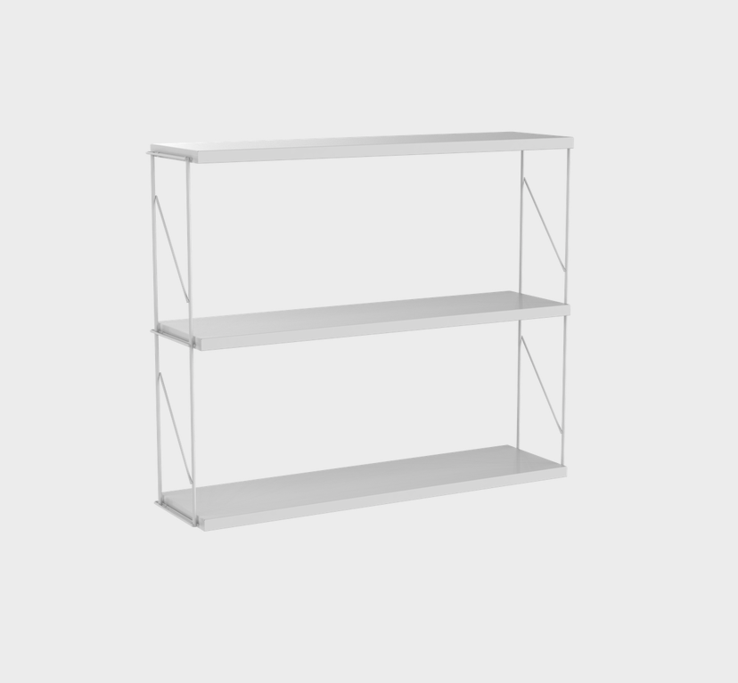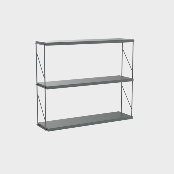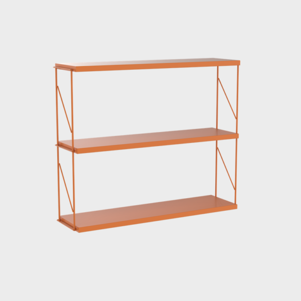 Wall unit. Shelves formed by two side supports and three painted steel shelves.