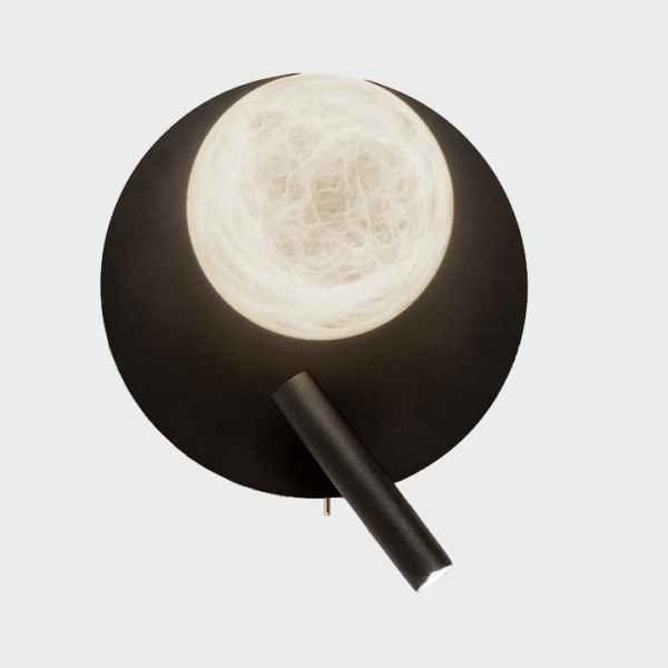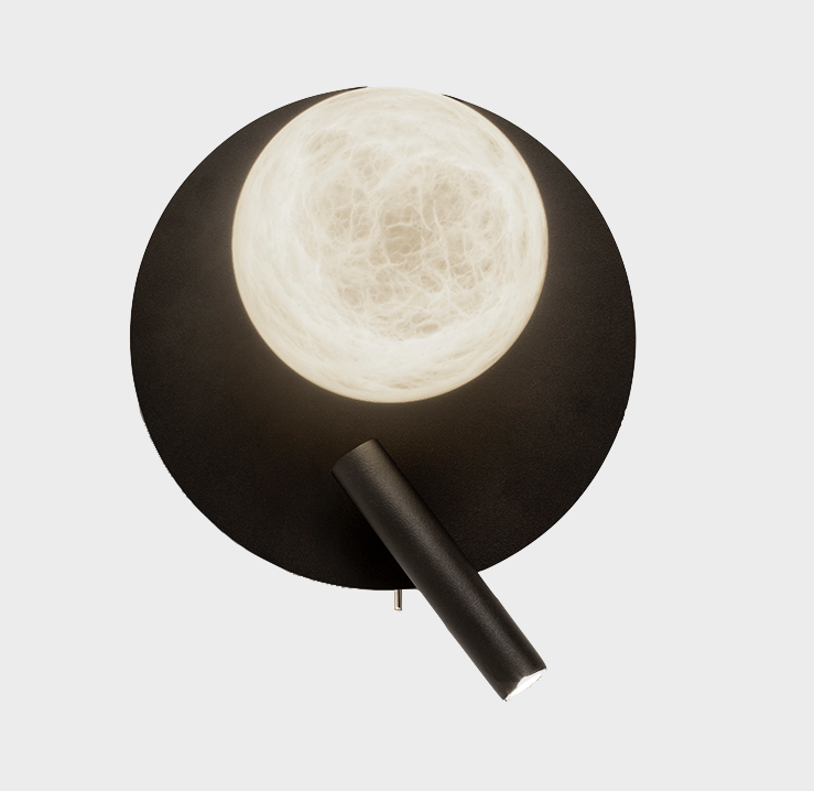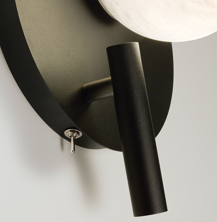 Due to the design of the luminaire and the position of the reader, it allows the same piece to be placed both on the right or left side of the bed, with the reader beneath the sphere or on the side of it, making it widely polyvalent.
