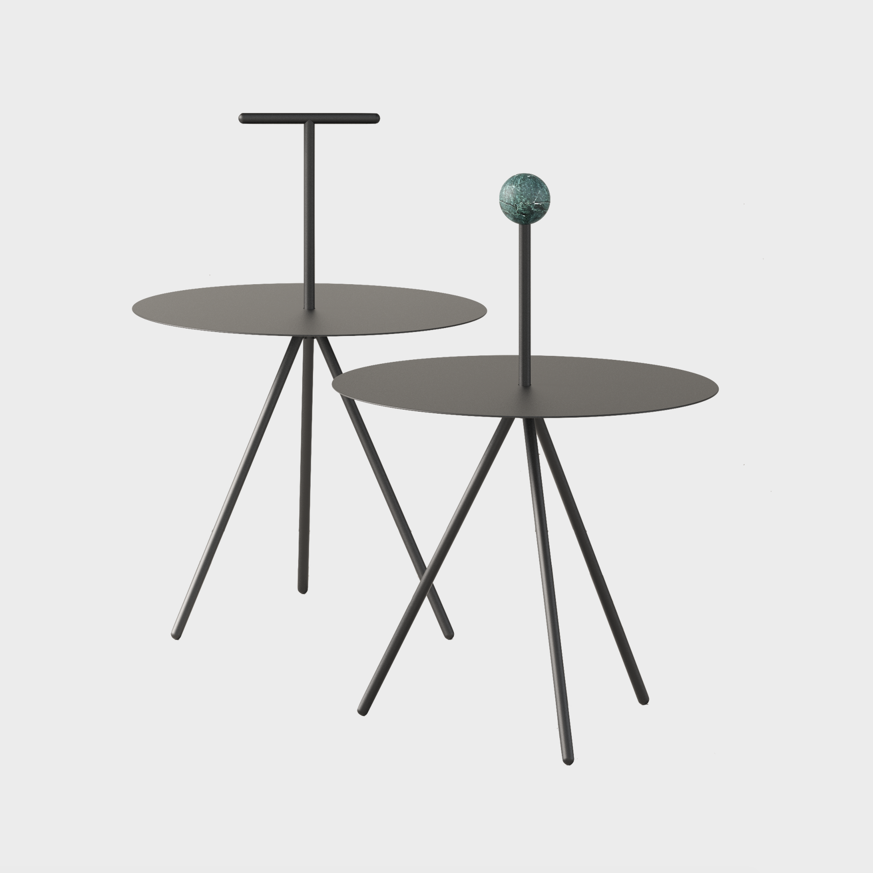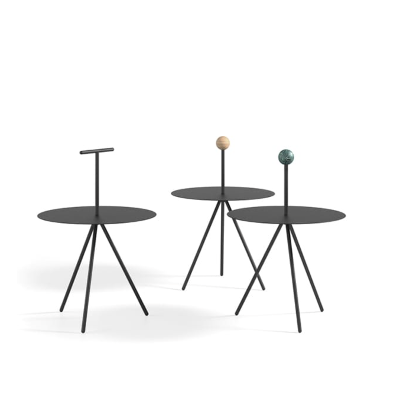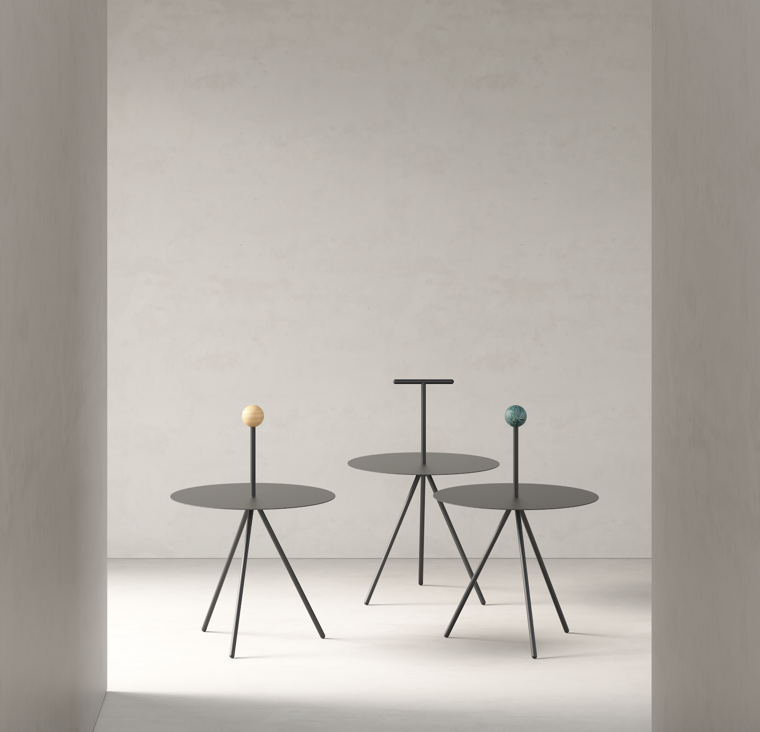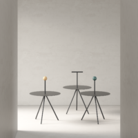 Trino is born with a sculptural soul and stage vocation, with the inherent elegance of a design capable of expressing and complementing all types of interiors. Easy to move thanks to a handle available in three different finishes: metal, solid oak and marble.