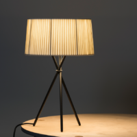 This set of three crossed metal tubes resembling Chinese chopsticks that support an ample ribbon shade without the need for a base was something of a revolution in Santa & Cole’s catalogue and celebrated its fifteenth anniversary in 2010. It is a family of lamps designed to create warm atmospheres, arouse sensations and liven up monochromatic spaces.