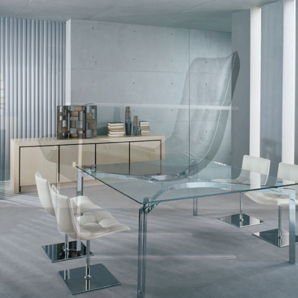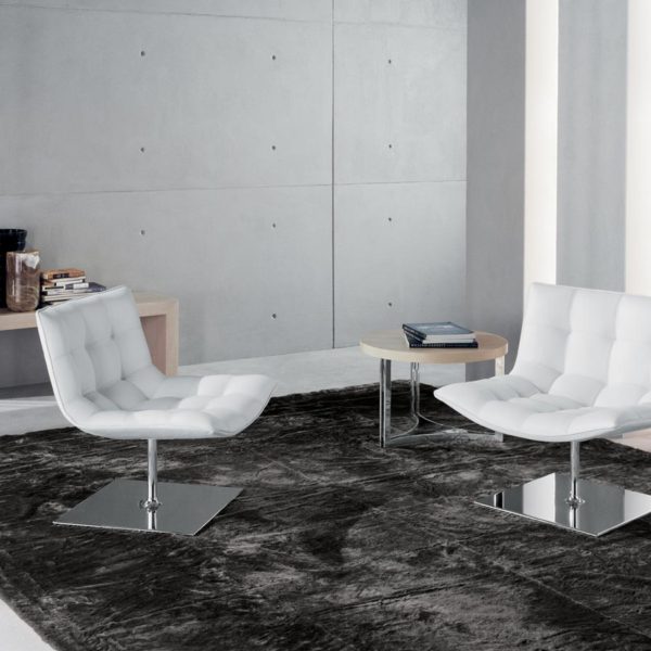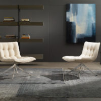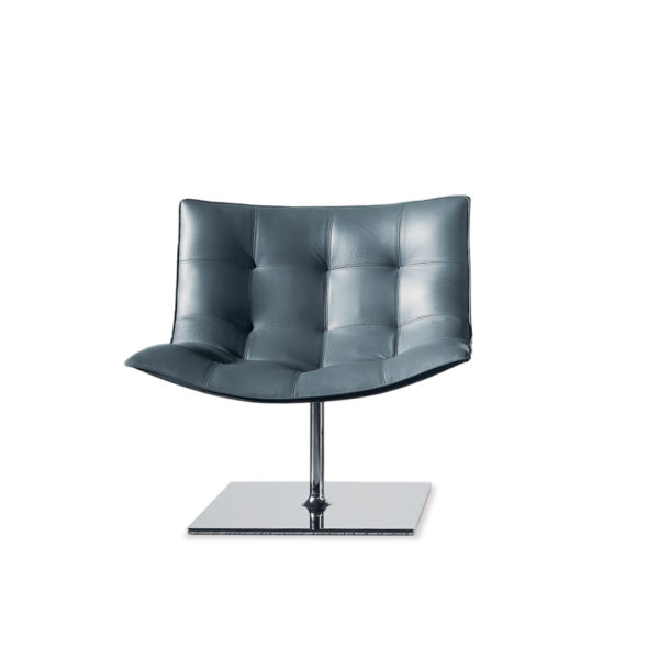 Conceived as a singular collection destined for the world of contract as well as the home. The Turkana collection consists of an occasional chair, chair, barstool, and an exclusive chaise-longue. Available in swivel or fixed versions. Covers in different fabrics or leathers. Foot in aluminum and steel, with finish in dull or bright chrome. The base can be in squared or rounded aluminum.
