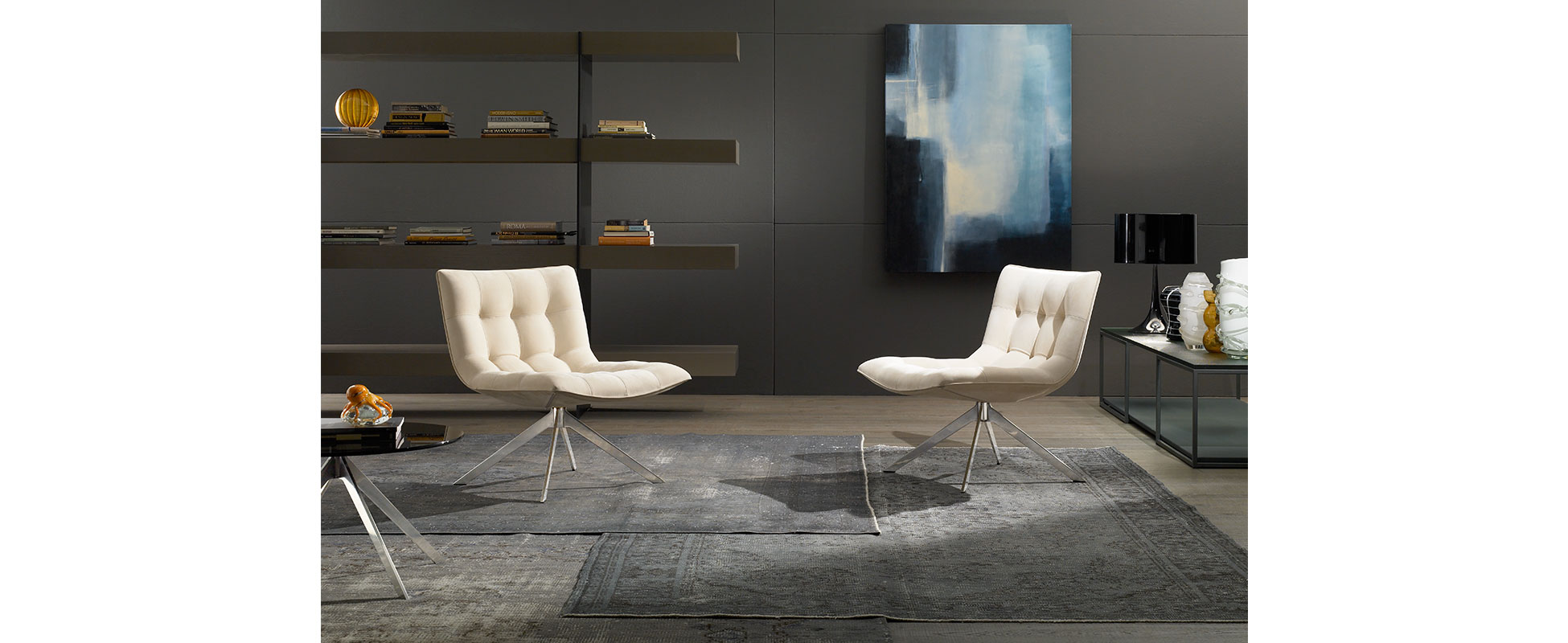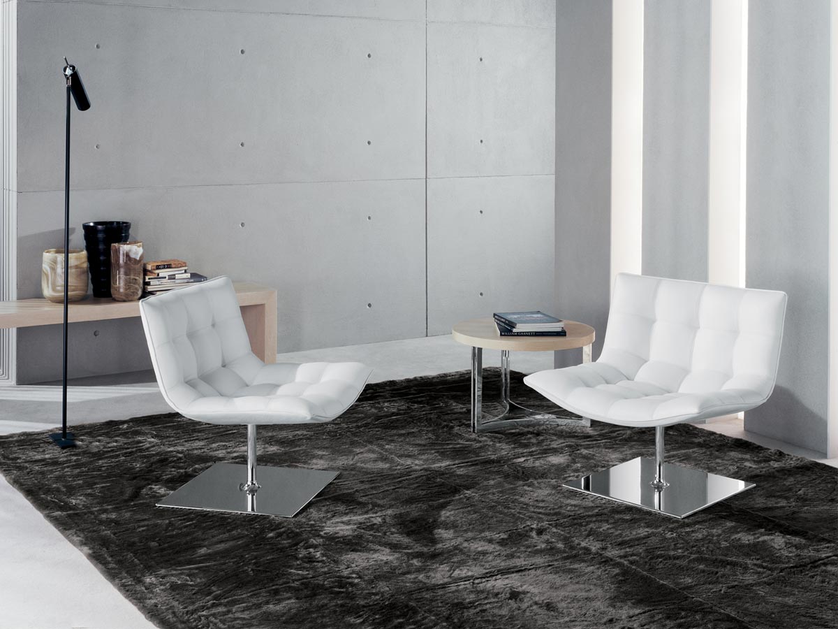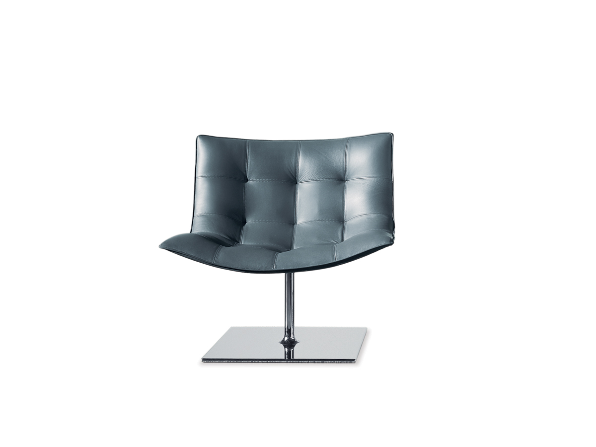 Conceived as a singular collection destined for the world of contract as well as the home. The Turkana collection consists of an occasional chair, chair, barstool, and an exclusive chaise-longue. Available in swivel or fixed versions. Covers in different fabrics or leathers. Foot in aluminum and steel, with finish in dull or bright chrome. The base can be in squared or rounded aluminum.