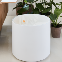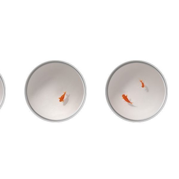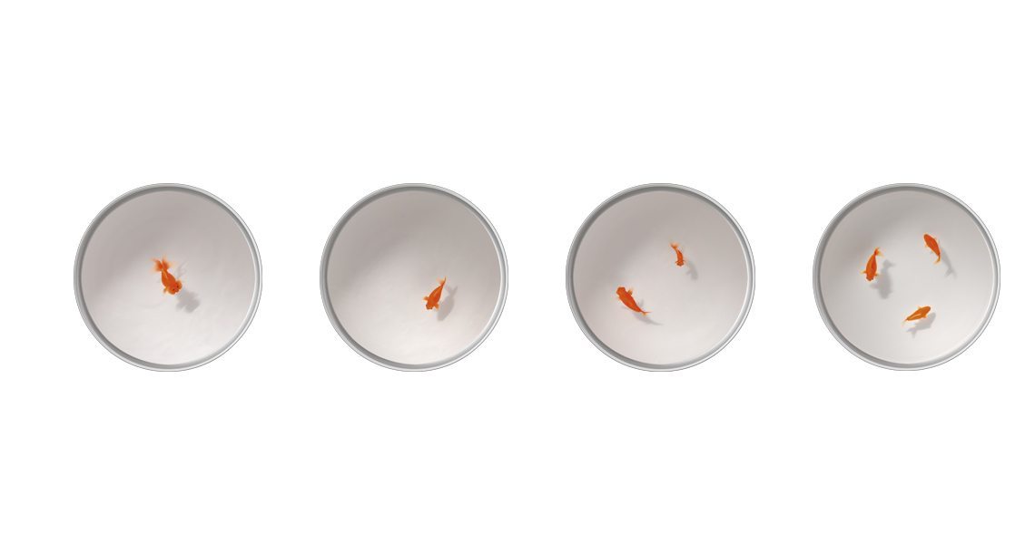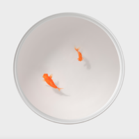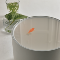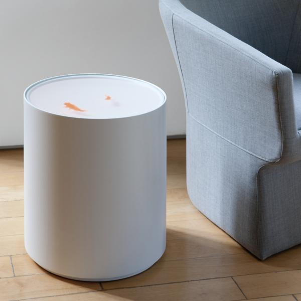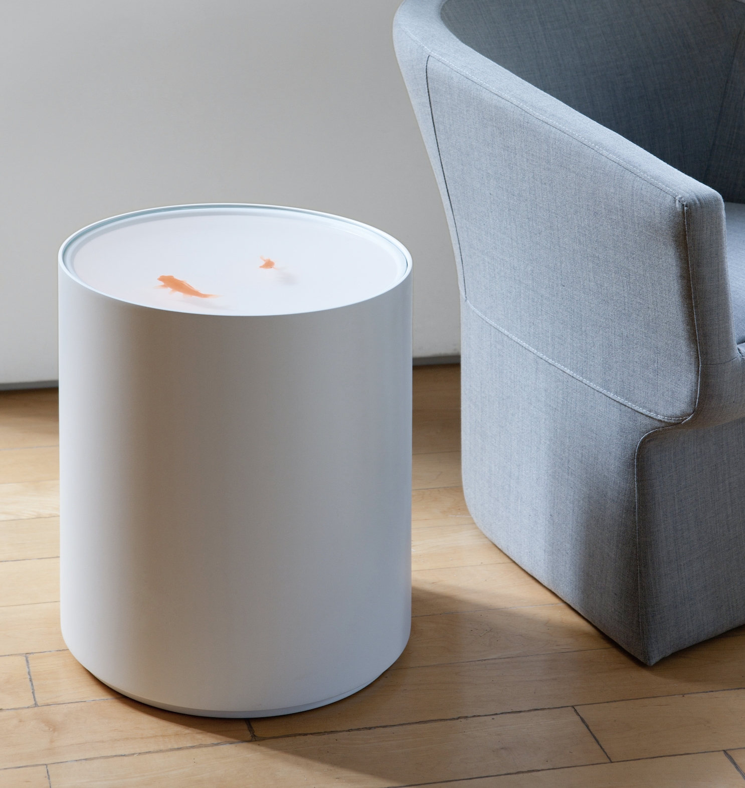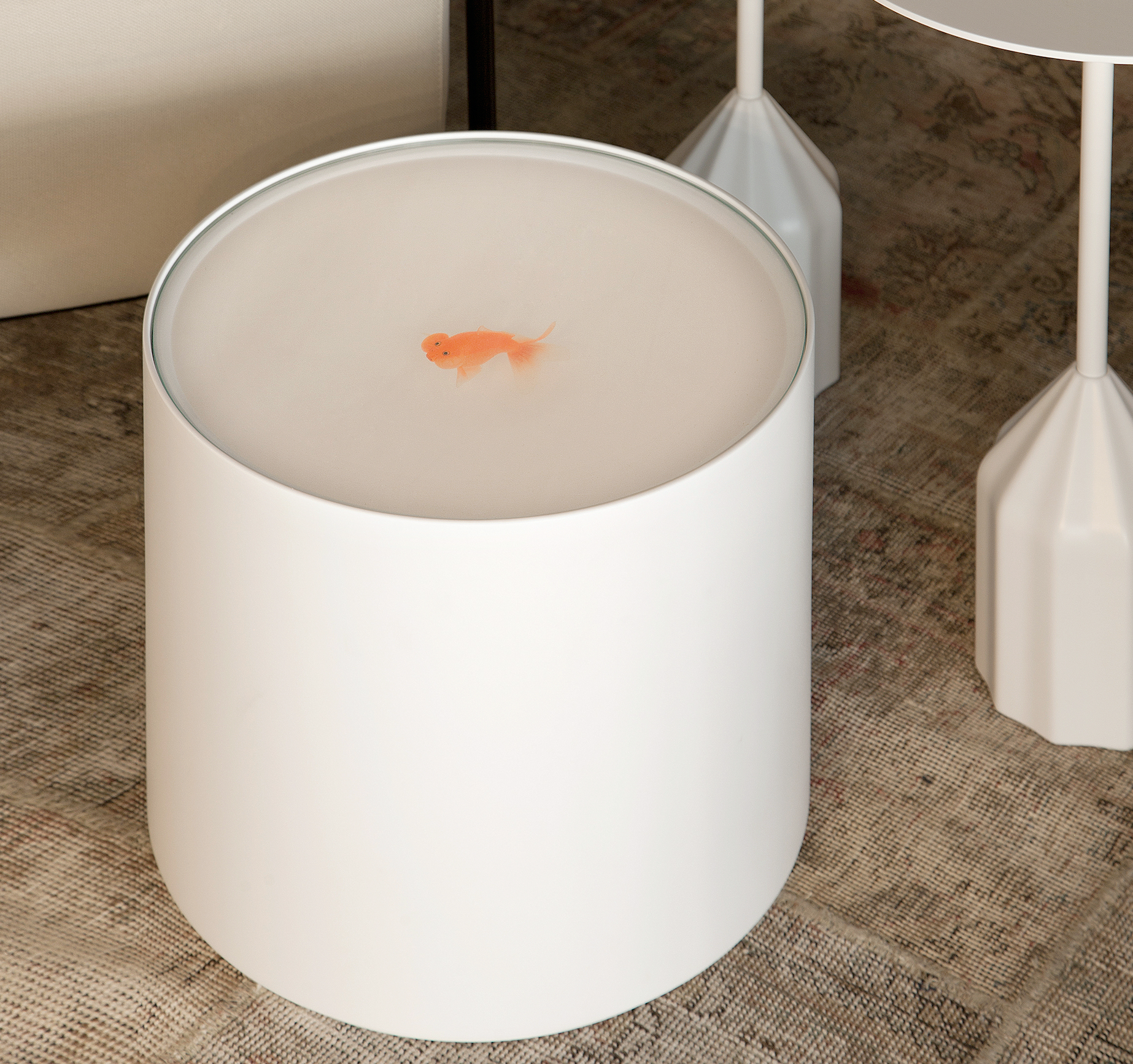 A subtle option for singular spaces with its fish floating in a lacquered cylinder, with no decoration other than themselves.