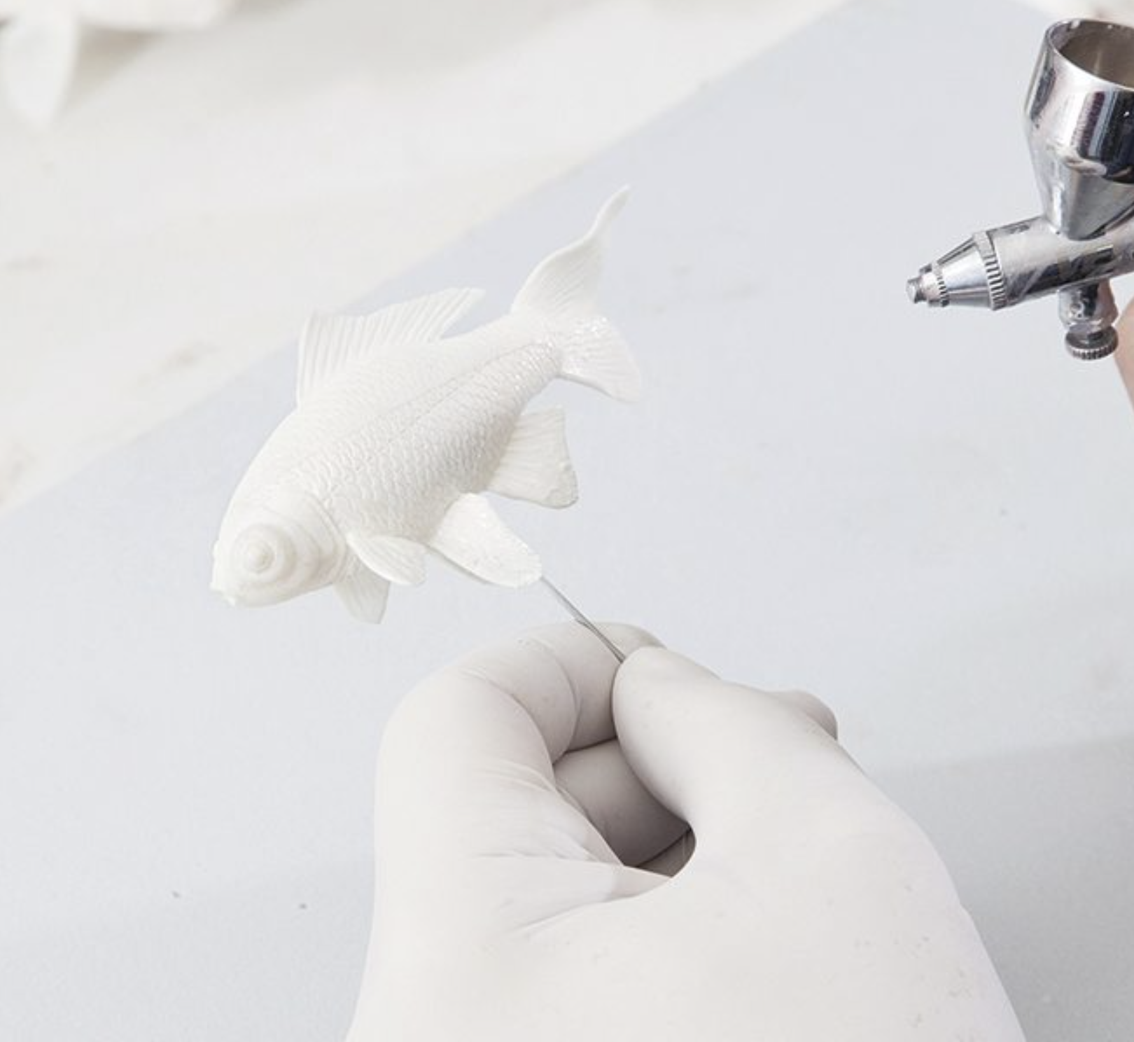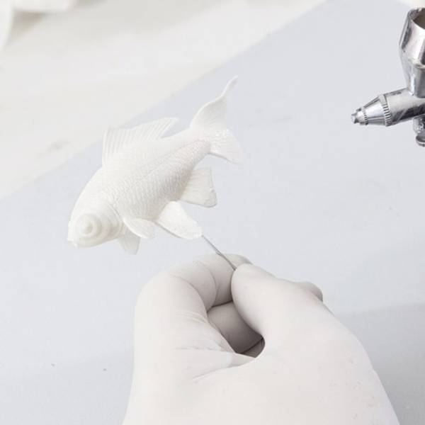 An exercise in minimalism made of a patented environment-friendly resin with hand-made fish.