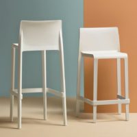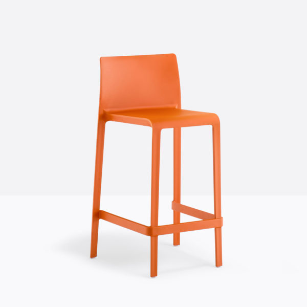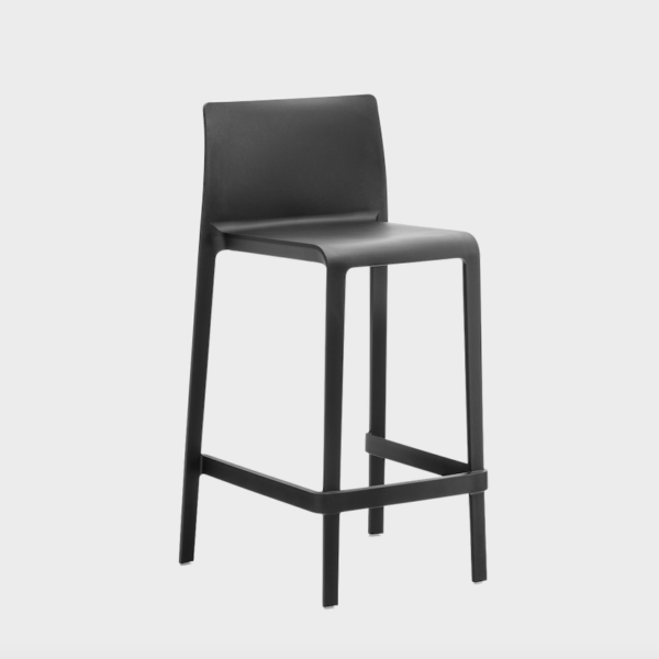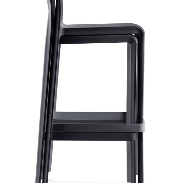 Volt barstool, with its pure volume and its well-defined lines is the result of an excellent selection of the best technologies and researches in plastic materials. The compact size and ergonomic shape ensure functionality and comfort. The footrest on three sides, like a bend, grants the stackability. Made of polypropylene, injected with gas air molding and reinforced by fiberglass.