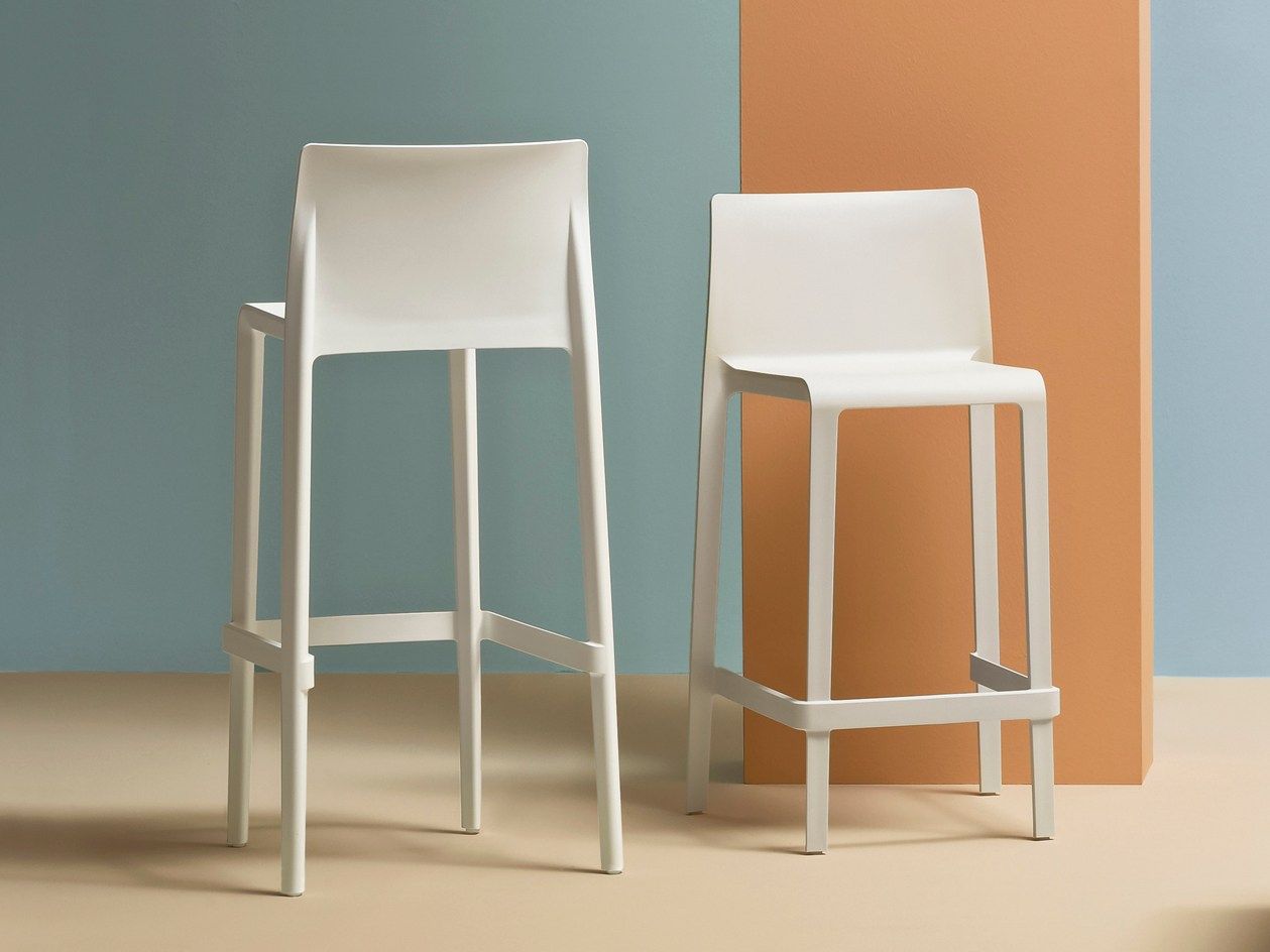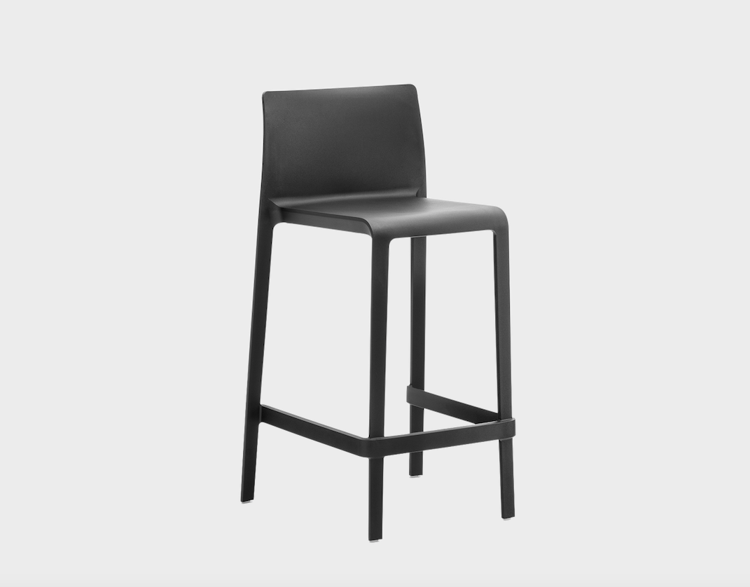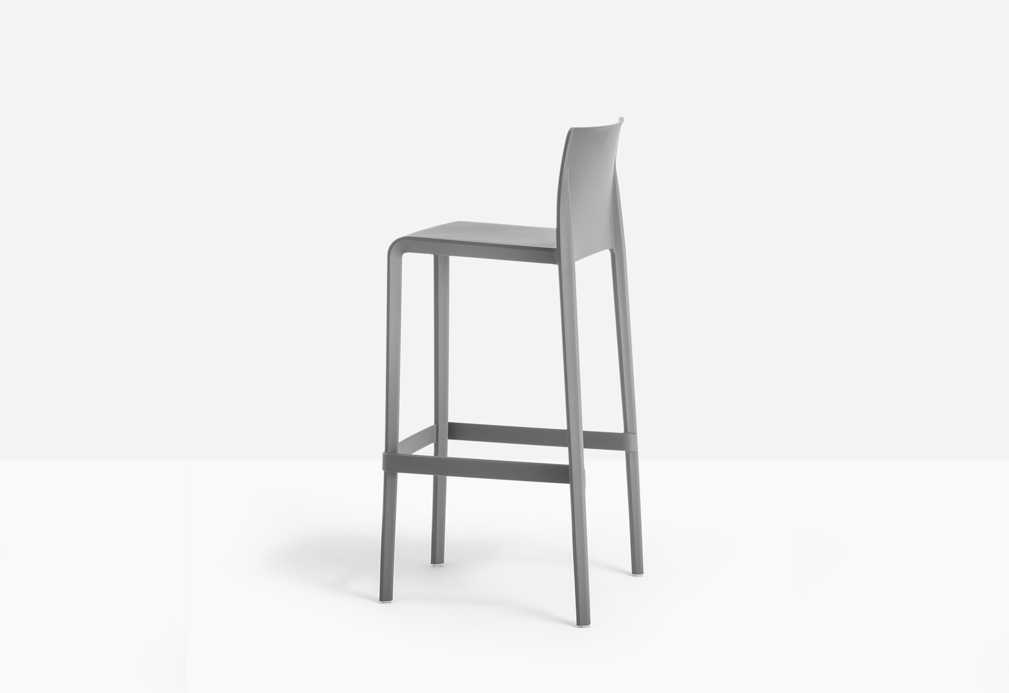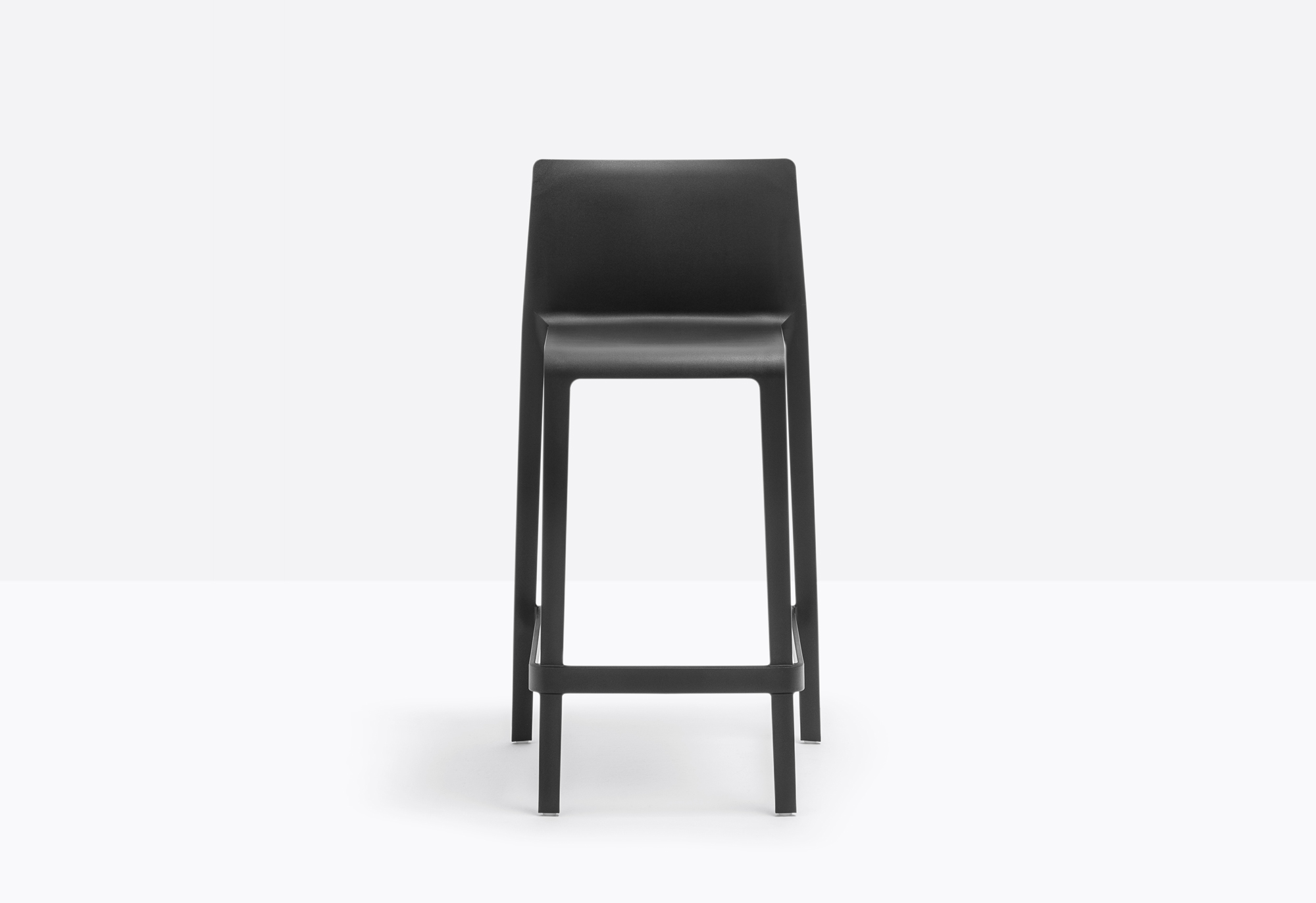 Volt barstool, with its pure volume and its well-defined lines is the result of an excellent selection of the best technologies and researches in plastic materials. The compact size and ergonomic shape ensure functionality and comfort. The footrest on three sides, like a bend, grants the stackability. Made of polypropylene, injected with gas air molding and reinforced by fiberglass.