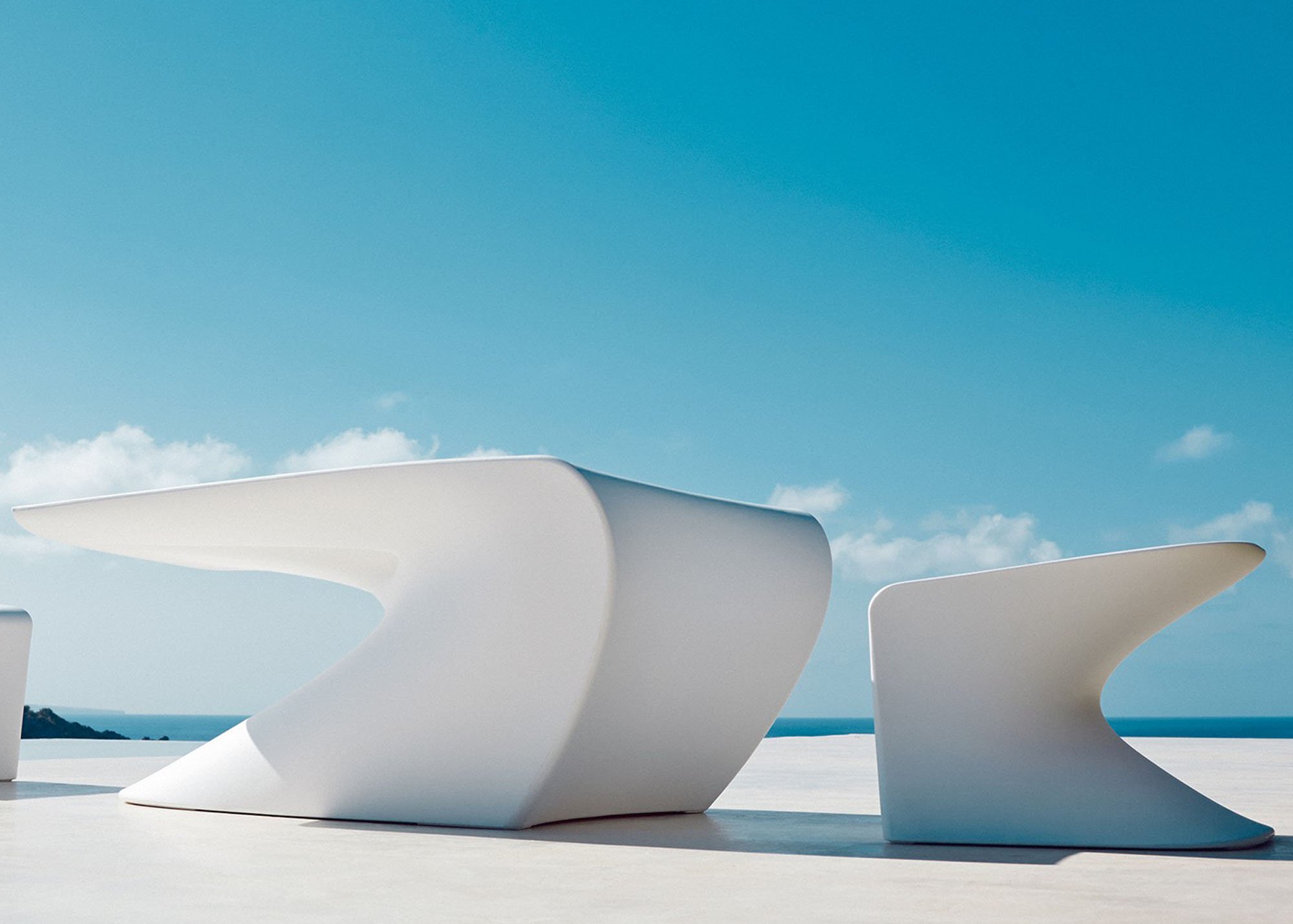 This collection was born by weaving together straight and curved lines in a dynamic way, with a huge visual impact and an impressive sculptural significance.
