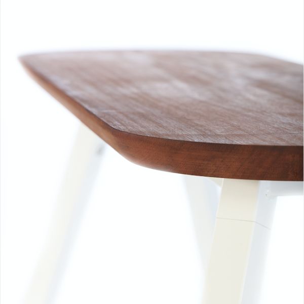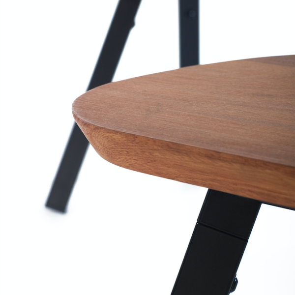 Structure: Steel with cataphoretic coating process with polyester paint in black or white. Seat in Iroko wood for indoor and outdoor and also in Solid Oak only for indoor.
