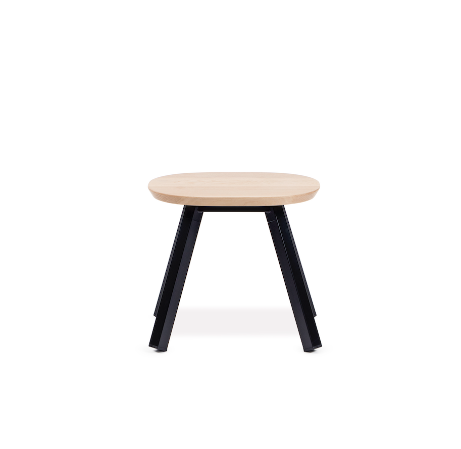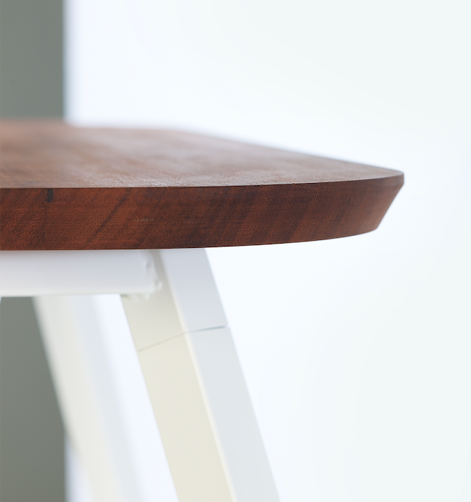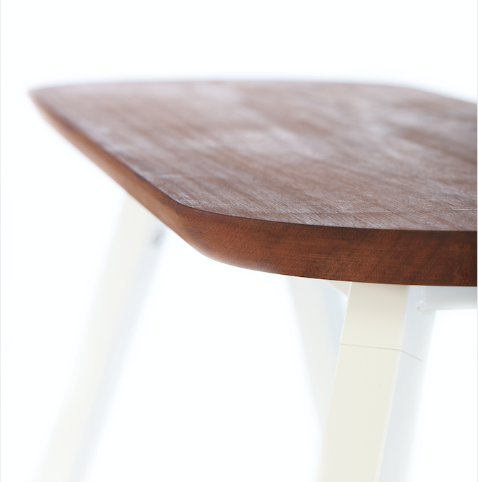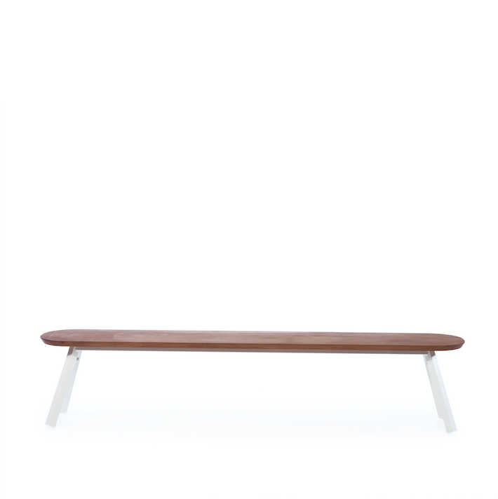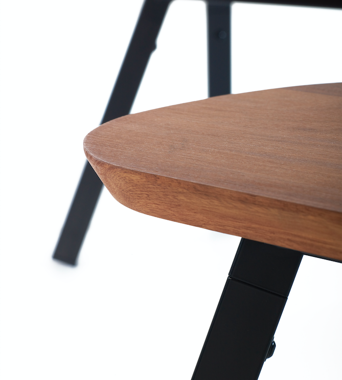 Structure: Steel with cataphoretic coating process with polyester paint in black or white. Seat in Iroko wood for indoor and outdoor and also in Solid Oak only for indoor.