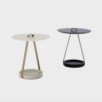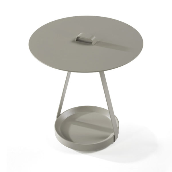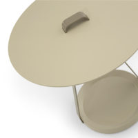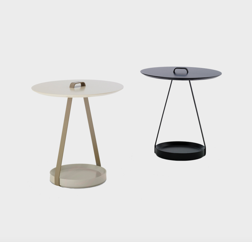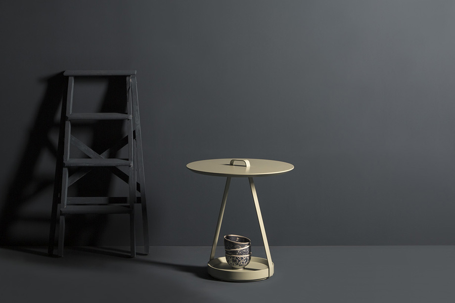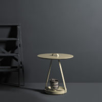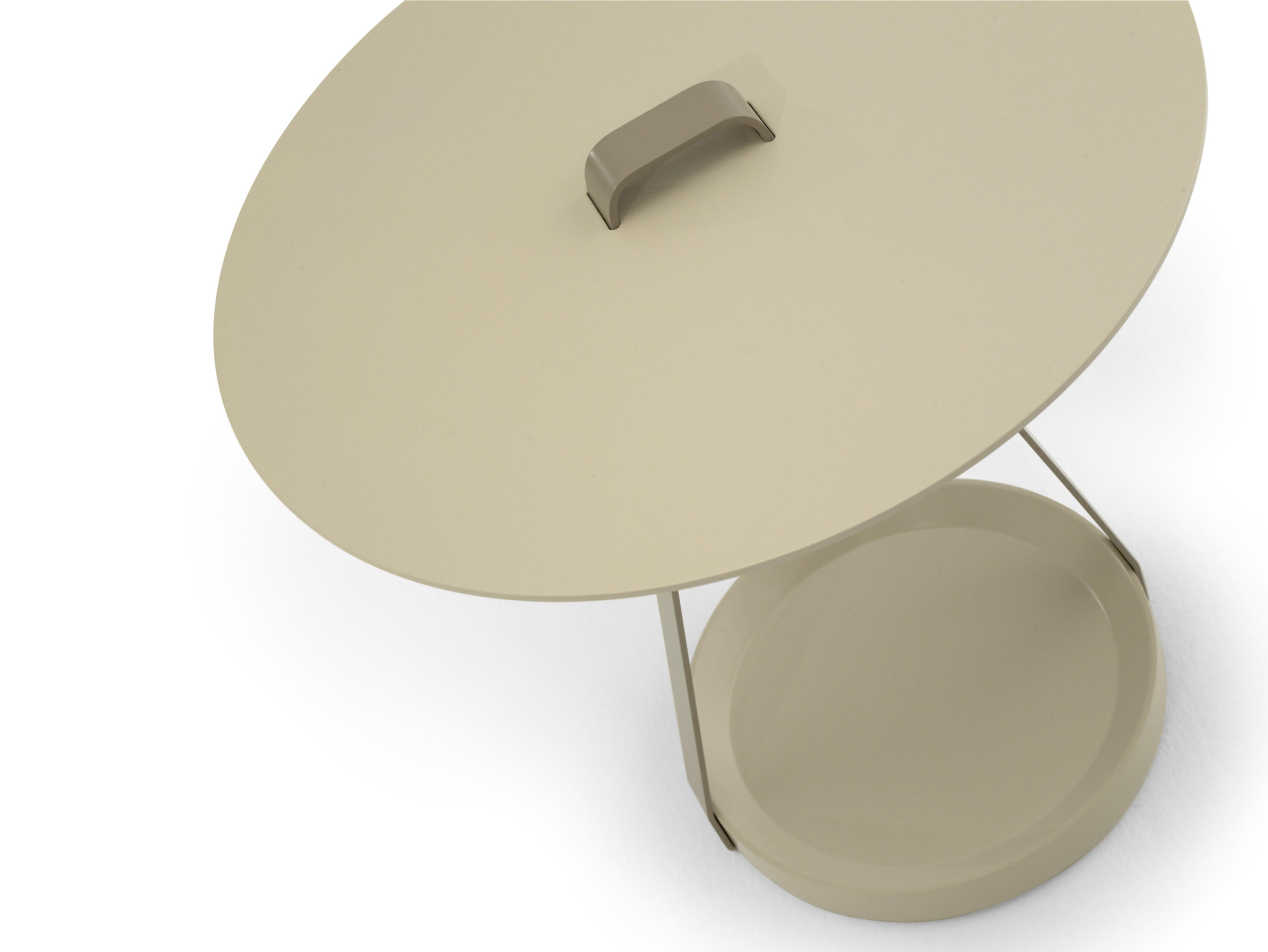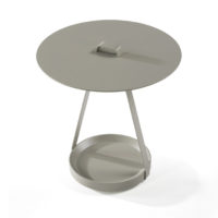Occasional table comprising a circular top and base in lacquered MDF and lacquered metal structure. Please specify lacquer colour, available in the spec sheet.